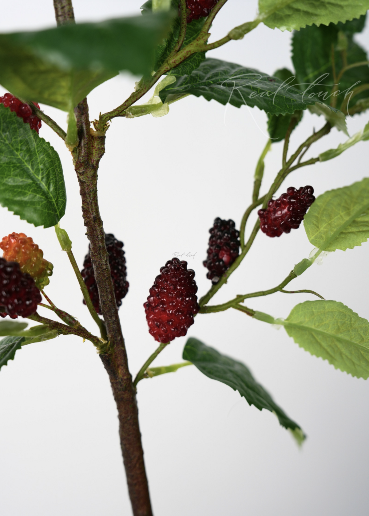 Ветка шелковицы Real Touch – это изысканный элемент декора, выполненный с высокой степенью реалистичности и детализации. Она станет прекрасным украшением для интерьера благодаря насыщенным черно-красным плодам и натуральному виду.