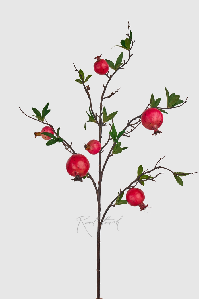Ветка граната станет ярким акцентом в интерьерных композициях, напольных или настольных вазах. Её насыщенные цвета и реалистичная проработка плодов делают ветку граната особенно выразительной в сезонном декоре, например, в осенних и зимних композициях.