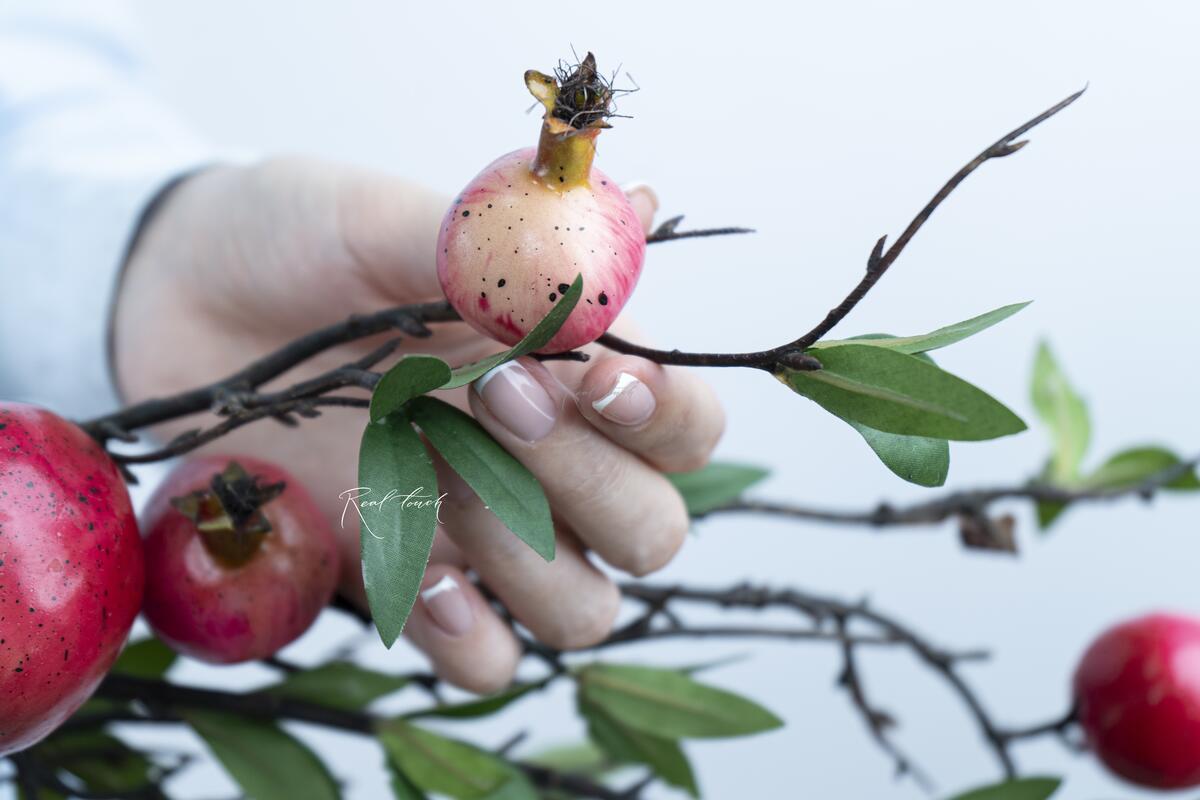 Ветка с гранатами — это декоративный элемент, который принесёт яркость и выразительность в любой интерьер.