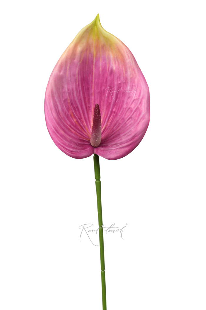 Антуриум 3D - яркий, глянцевый, сияющий цветок в ассортименте Real Touch, который представлен в 11 цветах: белый, бело-розовый, светло-розовый, розово-желтый, розовый, розово-зеленый, зелено-розовый, светло-зеленый, желто-зеленый, зелено-фиолетовый, темно-фиолетовый.