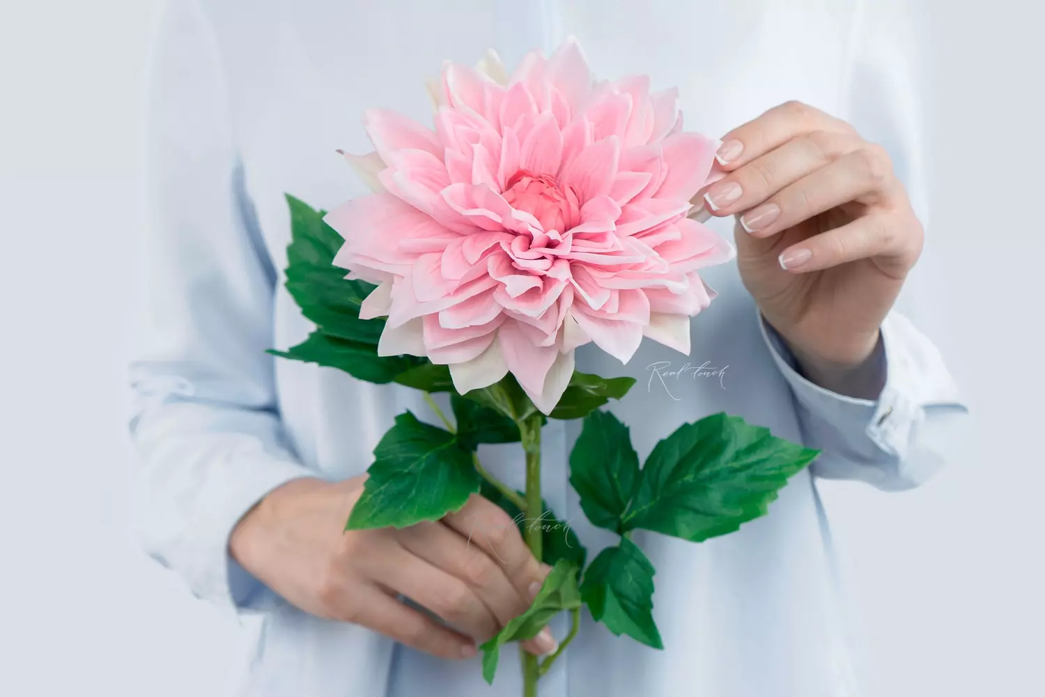 Новые георгины – безумно нежные на ощупь! 1 крупный бутон диаметром 15см состоит из множества заостренных текстильных лепестков с латексным покрытием. Латекс нанесен на внутреннюю сторону лепестка, что делает его таким невероятным при прикосновении, хочется погладить каждый лепесточек. Цвета – от нежного розового до малинового, всего 4 оттенка. Есть немного пестрые без мягкой градиенты, а есть с более равномерным цветом. Высота цветка 71см. Также, как новые пионы, розы Дэвида Остина, георгин будет чудесно смотреться в монобукете и будет гармонично сочетаться с другим цветами и растениями.