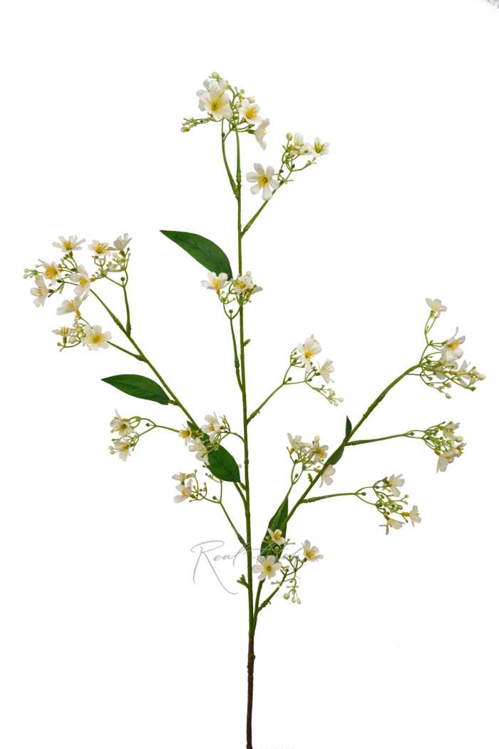 Стебель гипсофилы изготовлен из пластика с металлической проволокой внутри. Это делает ветку гибкой и позволяет придавать ей необходимую форму для создания уникальных дизайнов. Внешняя поверхность стебля реалистично повторяет структуру живого растения.