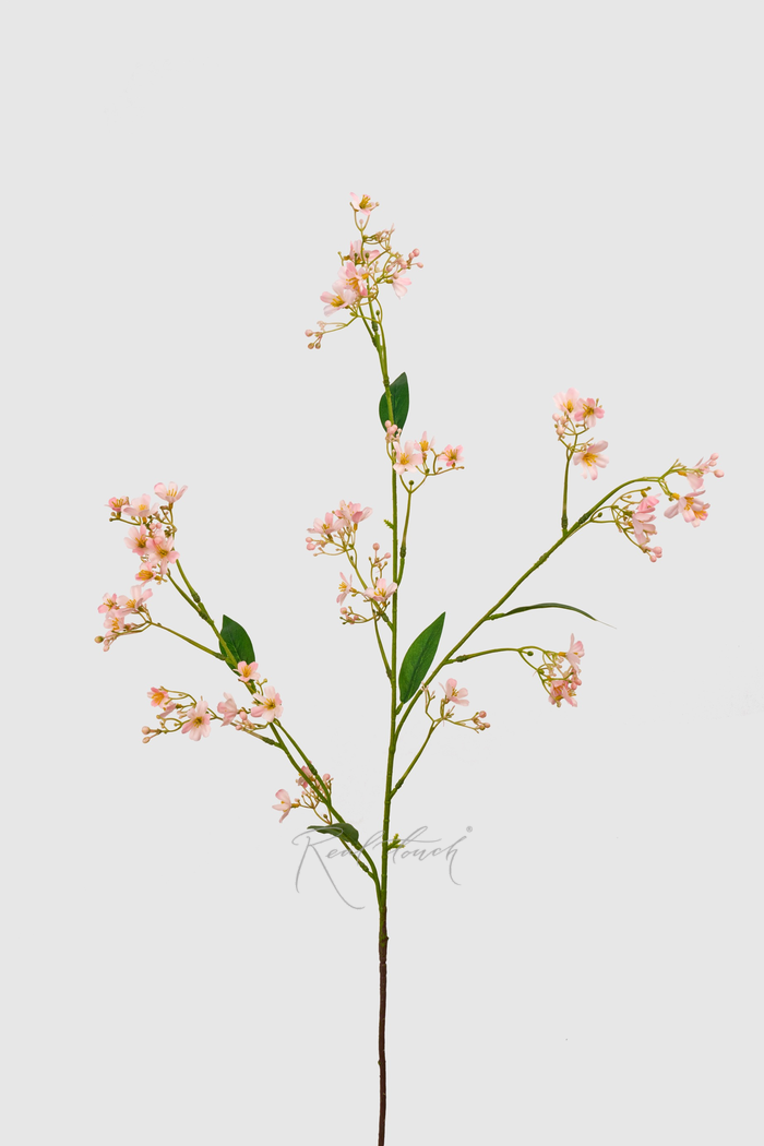 Стебель гипсофилы изготовлен из пластика с металлической проволокой внутри. Это делает ветку гибкой и позволяет придавать ей необходимую форму для создания уникальных дизайнов. Внешняя поверхность стебля реалистично повторяет структуру живого растения.