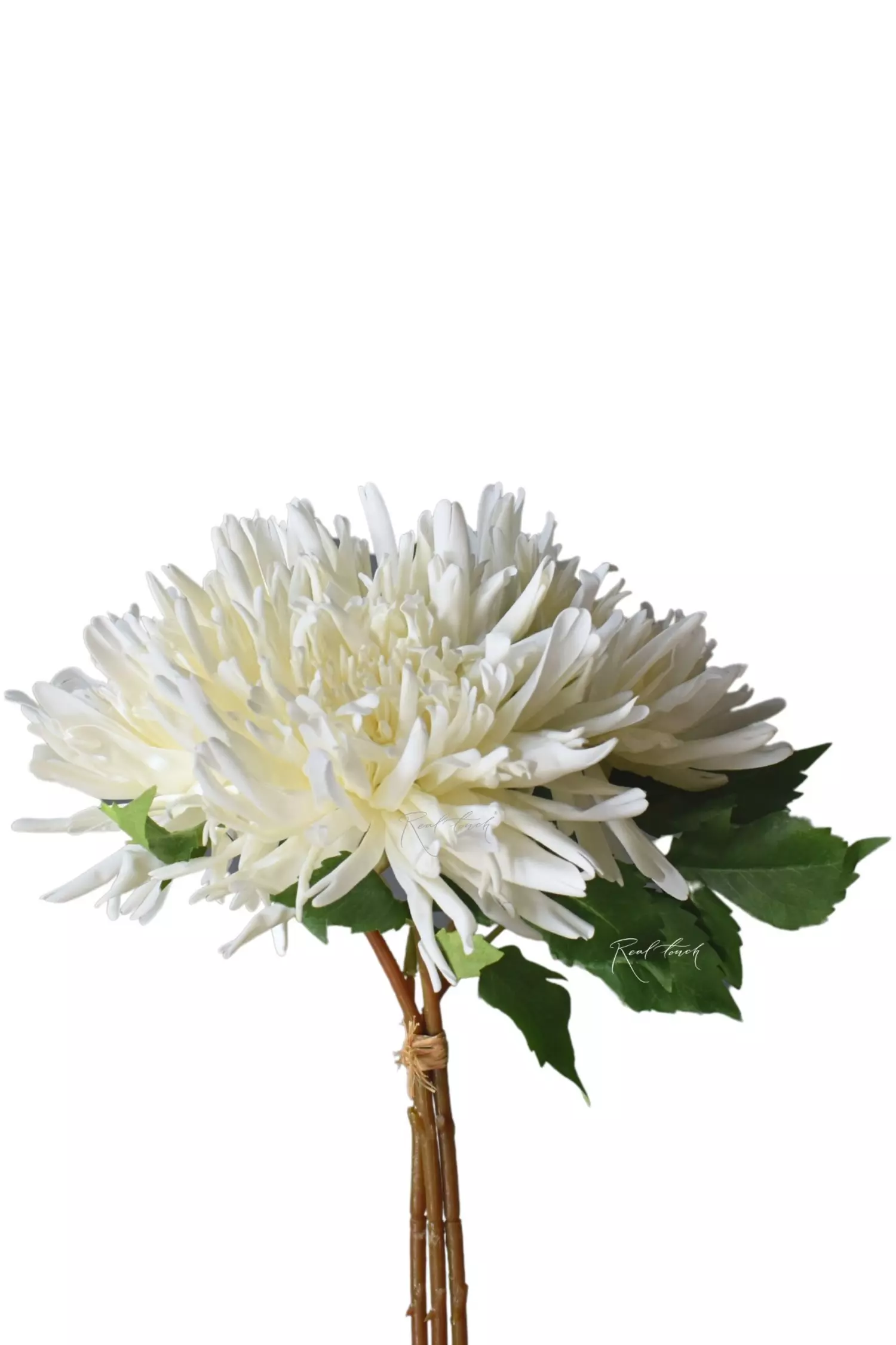 Хризантема Махровая – представлена в букетах по 3 бутона. Соцветия выполнены в новом материале – шелк с нанесением тонкого слоя пены с одной стороны. Данный материал придает лепесткам более плотную структуру, делая их мягче без излишней влажности.