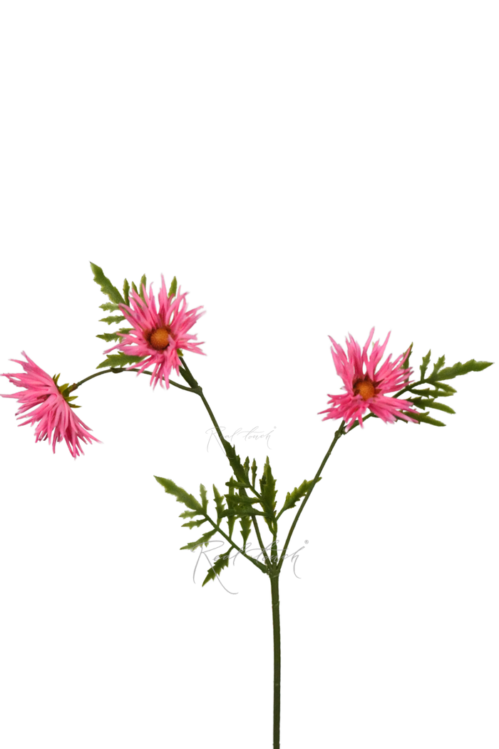 Хризантема Игольчатая small - миниатюрное пополнение в ассортименте хризантем Real Touch, которая приковывает внимание своим милым исполнением. Она представлена в пяти разных расцветках - белый, желтый, розовый, фиолетовый и фуксия, и станет отличным дополнением любой композиции!