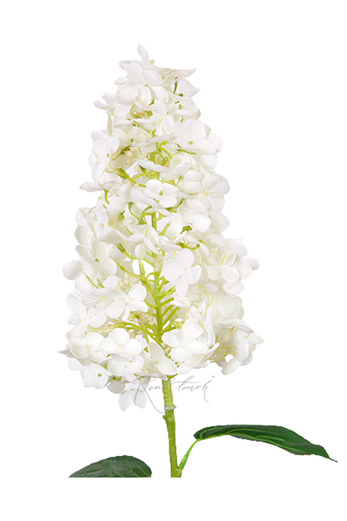 Данная гортензия покорила нас своей необычайной формой, которая отличает эту модель от всех остальных. Ее конусообразное соцветие состоит из небольших открытых цветочков и маленьких закрытых бутончиков. Яркие цветы представлены в 5 оттенках, от розового до голубого. Высота цветка 100см, само соцветие 30см. Данная гортензия практически не нуждается в отпаривании. Соцветия выполнены из силикона с 3D печатью прожилок, добавляя им природную естественность. Листья у нее широкие с печатью прожилок сделаны из водонепроницаемого полотна. Стоит обратить внимание на стебель, он обладает градиентом: от коричневого до зеленого, также он приятный на ощупь. За счет высокого стебля метельчатая гортензия может стоить в высокой напольной вазе и станет ярким акцентом, создавая особую атмосферу, добавляя в интерьер свежесть и ярких красок.