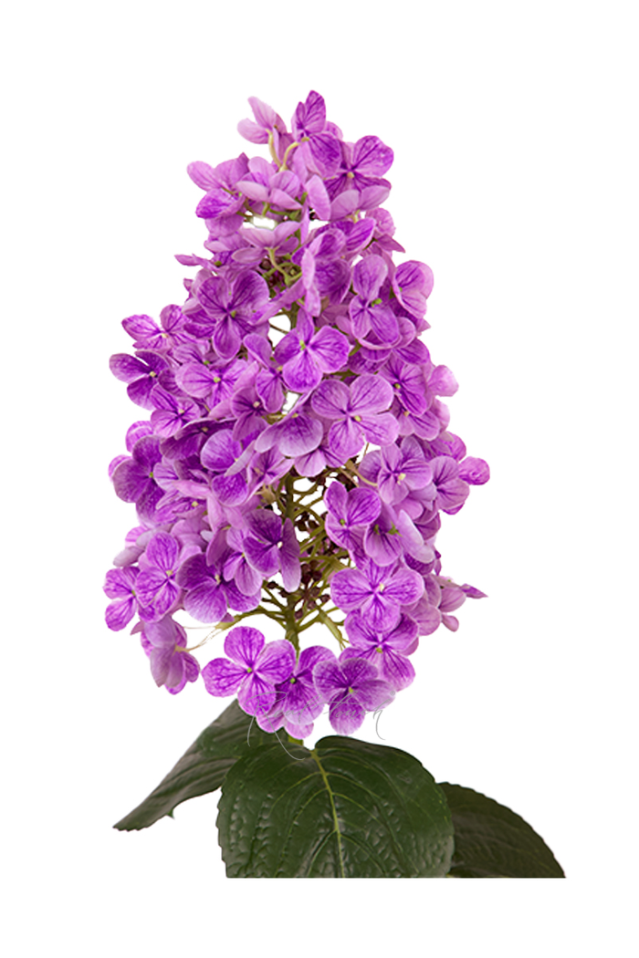 Данная гортензия покорила нас своей необычайной формой, которая отличает эту модель от всех остальных. Ее конусообразное соцветие состоит из небольших открытых цветочков и маленьких закрытых бутончиков. Яркие цветы представлены в 5 оттенках, от розового до голубого. Высота цветка 100см, само соцветие 30см. Данная гортензия практически не нуждается в отпаривании. Соцветия выполнены из силикона с 3D печатью прожилок, добавляя им природную естественность. Листья у нее широкие с печатью прожилок сделаны из водонепроницаемого полотна. Стоит обратить внимание на стебель, он обладает градиентом: от коричневого до зеленого, также он приятный на ощупь. За счет высокого стебля метельчатая гортензия может стоить в высокой напольной вазе и станет ярким акцентом, создавая особую атмосферу, добавляя в интерьер свежесть и ярких красок.