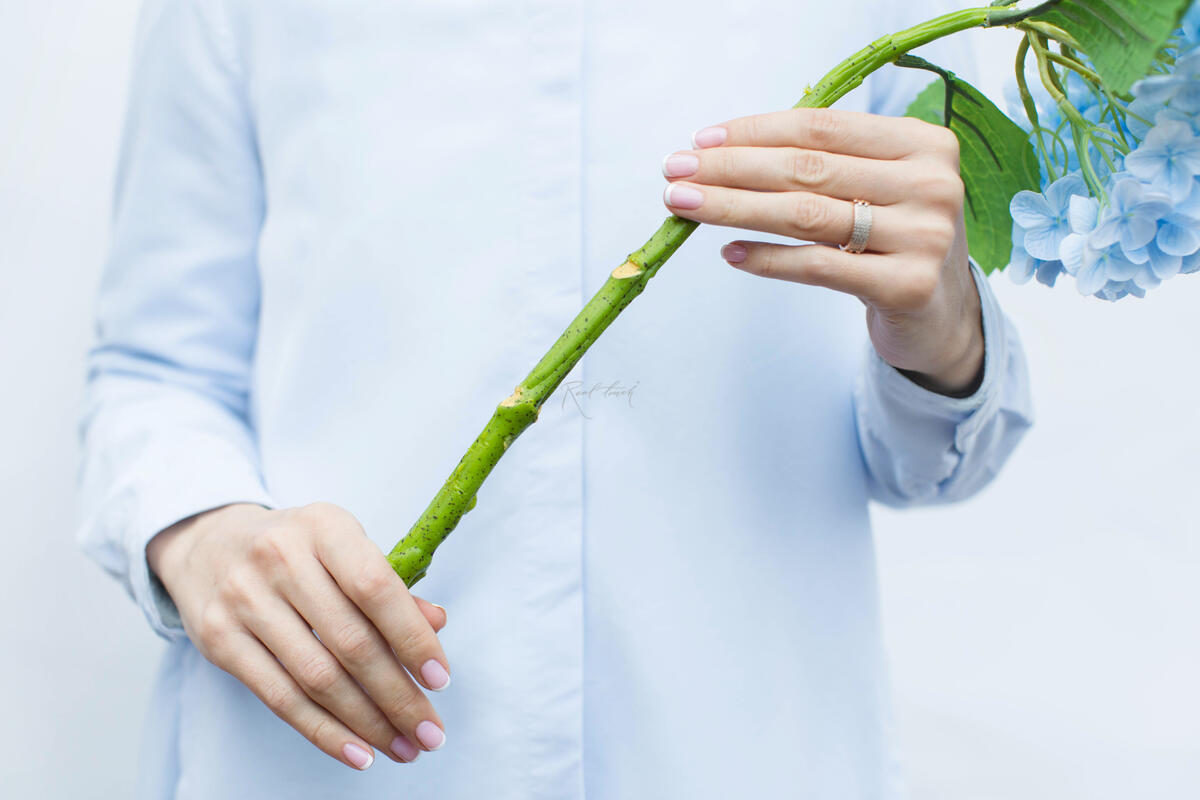 Искусственная гортензия садовая на стебле (голубой оттенок) — это изысканное декоративное растение, которое станет великолепным дополнением любого интерьера.