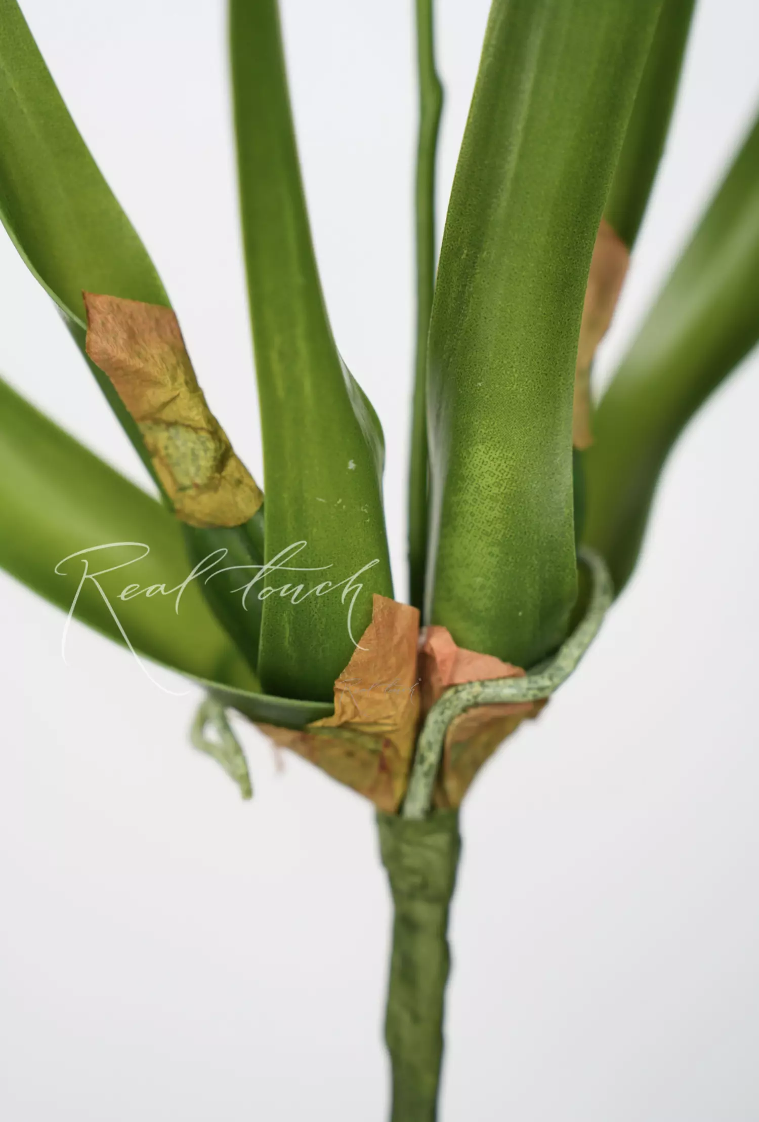 Также другие элементы детализации передают нам тактильное и визуальное ощущение настоящей орхидеи: засохшая часть внизу листьев и корешки.