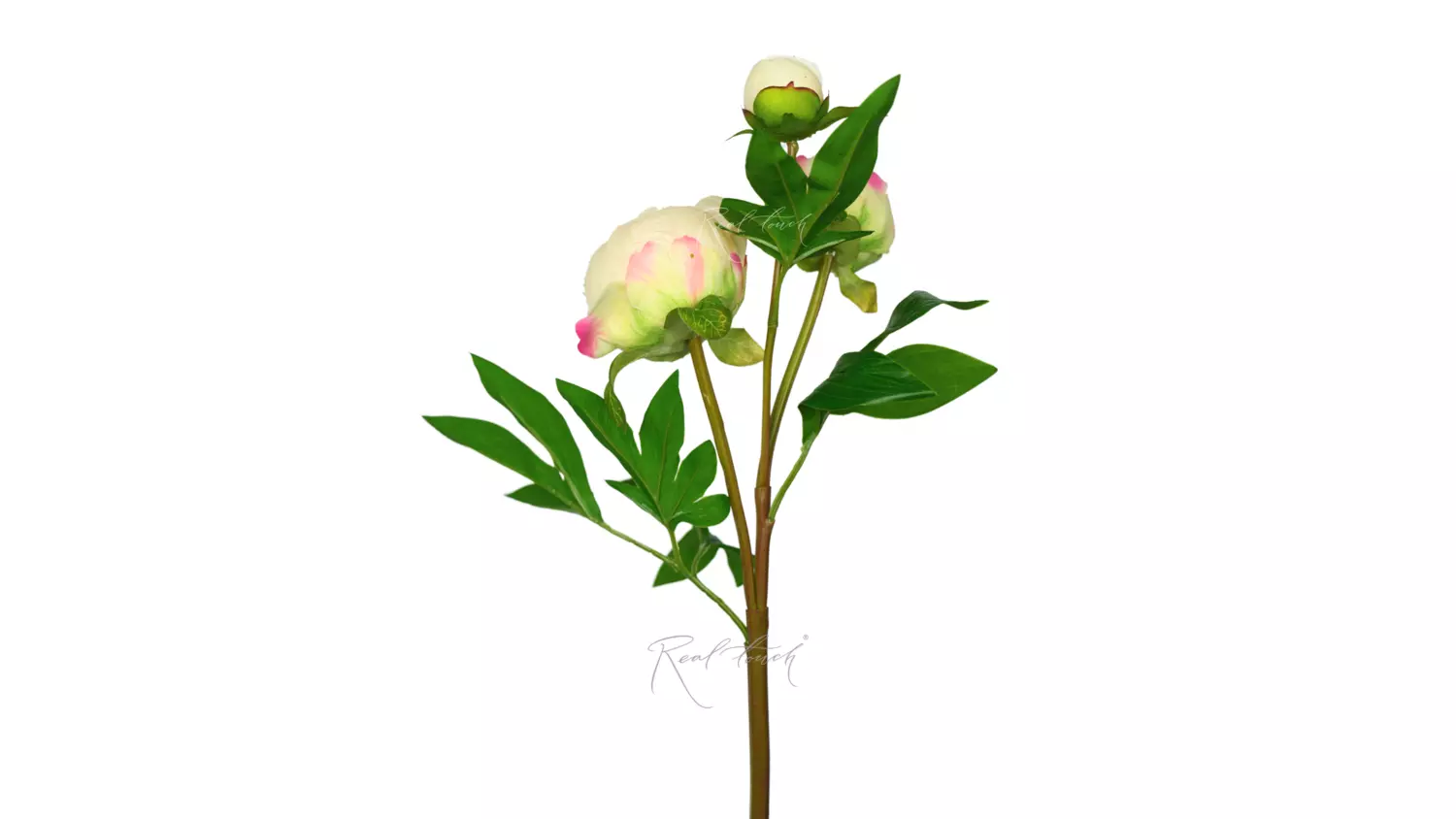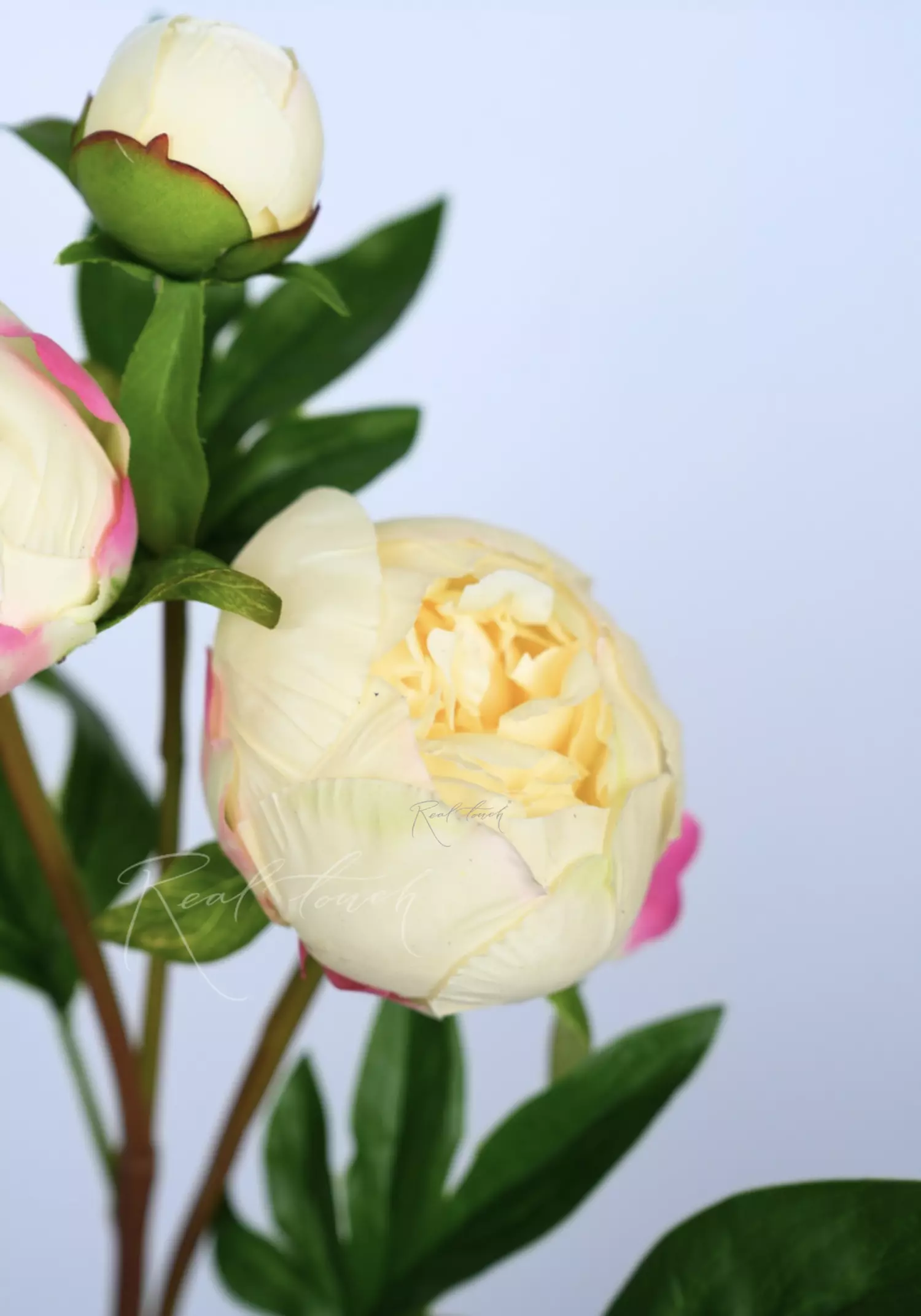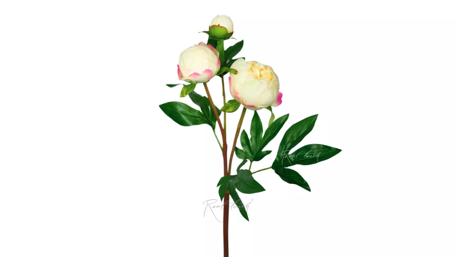 Пион из трех бутонов представлен в ассортименте Real Touch в трех нежных цветах: кремовый, бело-розовый и розовый.