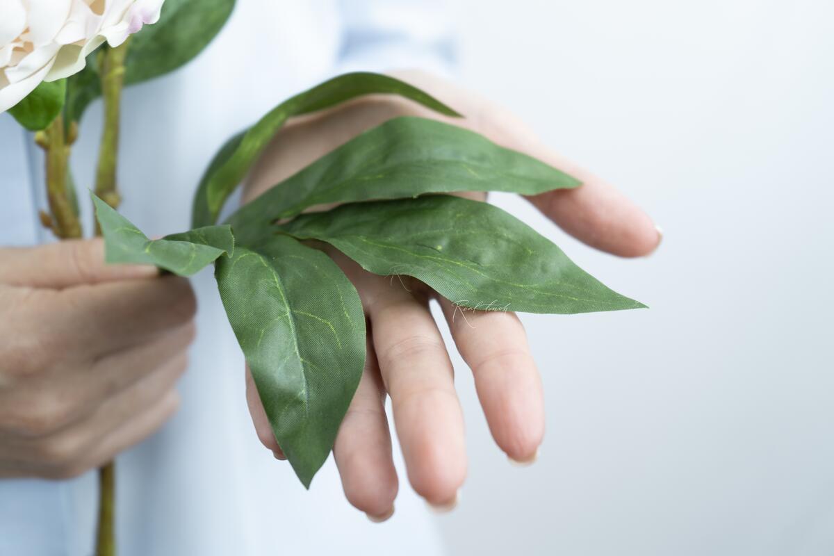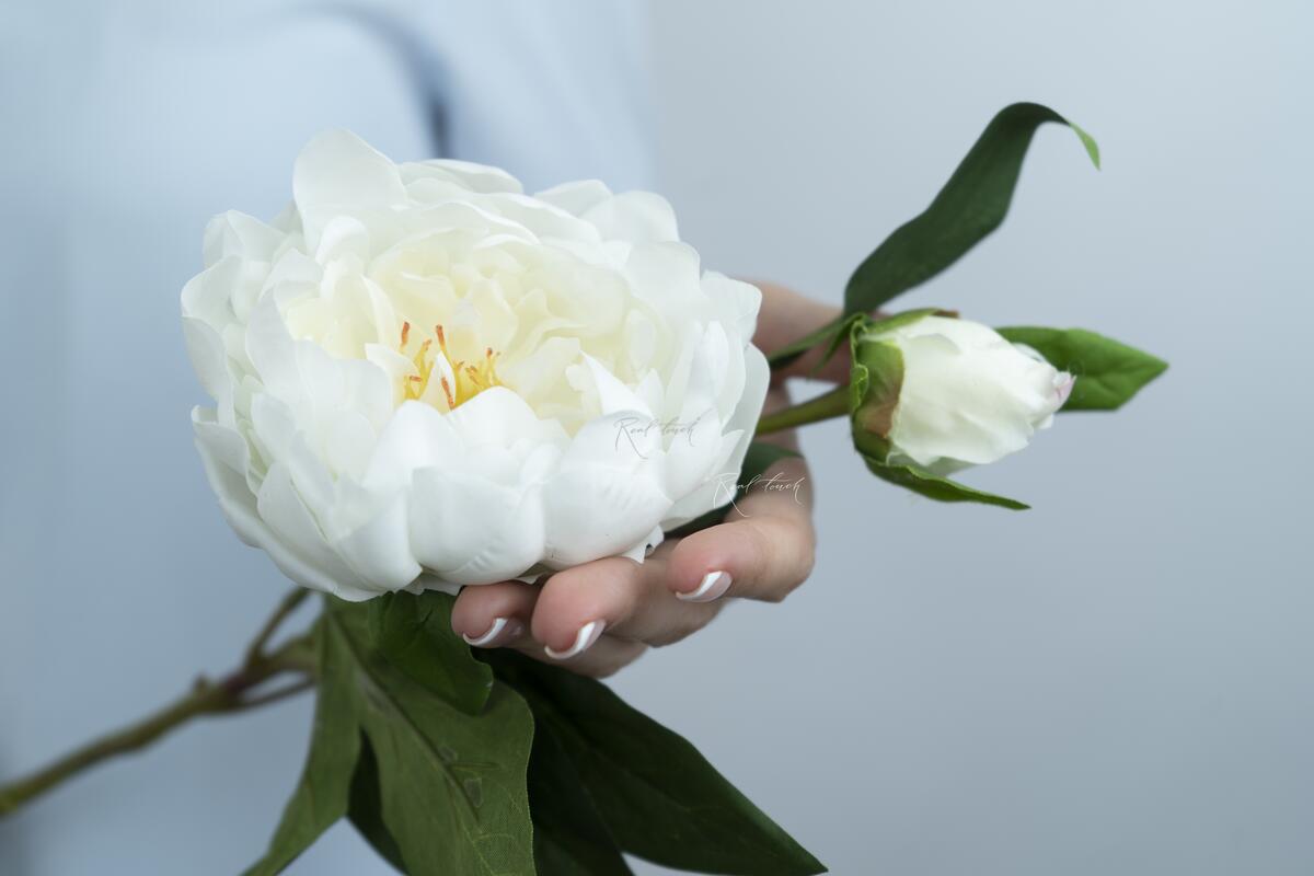 Диаметр большого бутона – 12см, среднего – 8см. Материал – шелк с латексным покрытием. НО! У данного вида пиона покрытие снаружи, в отличии от других моделей (пионов, роз и т.д.). Также следует обратить внимание на сердцевину – это полураспустившийся бутон, с текстильными внутренними лепестками, они более тонкие, без пропитки и более легкие. В самой сердцевинке – тоненькие тычинки из пластика. Листья из текстиля. Каждый из 2-х древовидных пионов представлен в 4 цветах: белый, персиковый, розовый и малиновый. Будут прекрасно смотреть как в монобукете, так и в сочетании с другими цветами и растениями. При использовании обратите внимание, что бутоны малинового цвета могут покрасить более светлые оттенки. Если вдруг бутон замялся, его легко можно расправить с помощью отпаривателя.