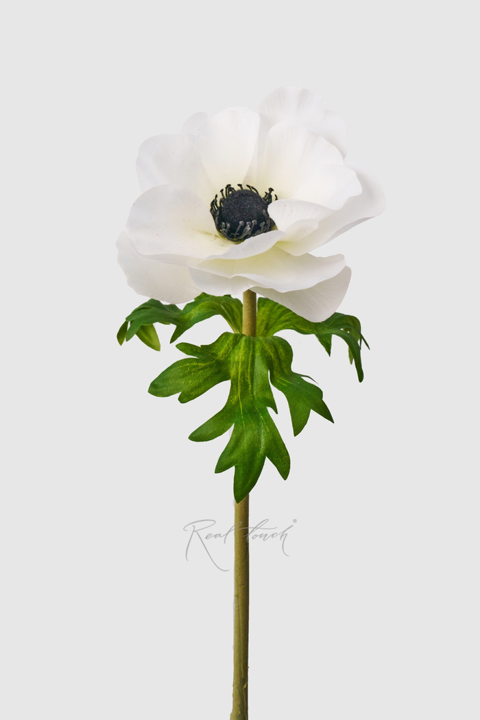 Яркие и неповторимые анемоны снова в ассортименте Real Touch. Новый вид создан из легкого и нежного текстиля. Это идеальный выбор для тех, кто хочет создать летнее настроение в интерьере. Высота цветка 48см, диаметр бутона 12см. Стебель данного анемона достаточно толстый (порядка 1 см) и приятный на ощупь, словно махровый благодаря особому покрытию. Сердцевина черного цвета с ворсом, нанесенным методом флокирования. Благодаря такой сердцевине цветок контрастнее и, следовательно, выглядит значительно ярче и привлекательнее. Некоторые лепестки формованы, то есть на них есть бороздки с прожилками, и слегка подогнутые края. На ощупь они тонкие и невесомые, будто у настоящего соцветия