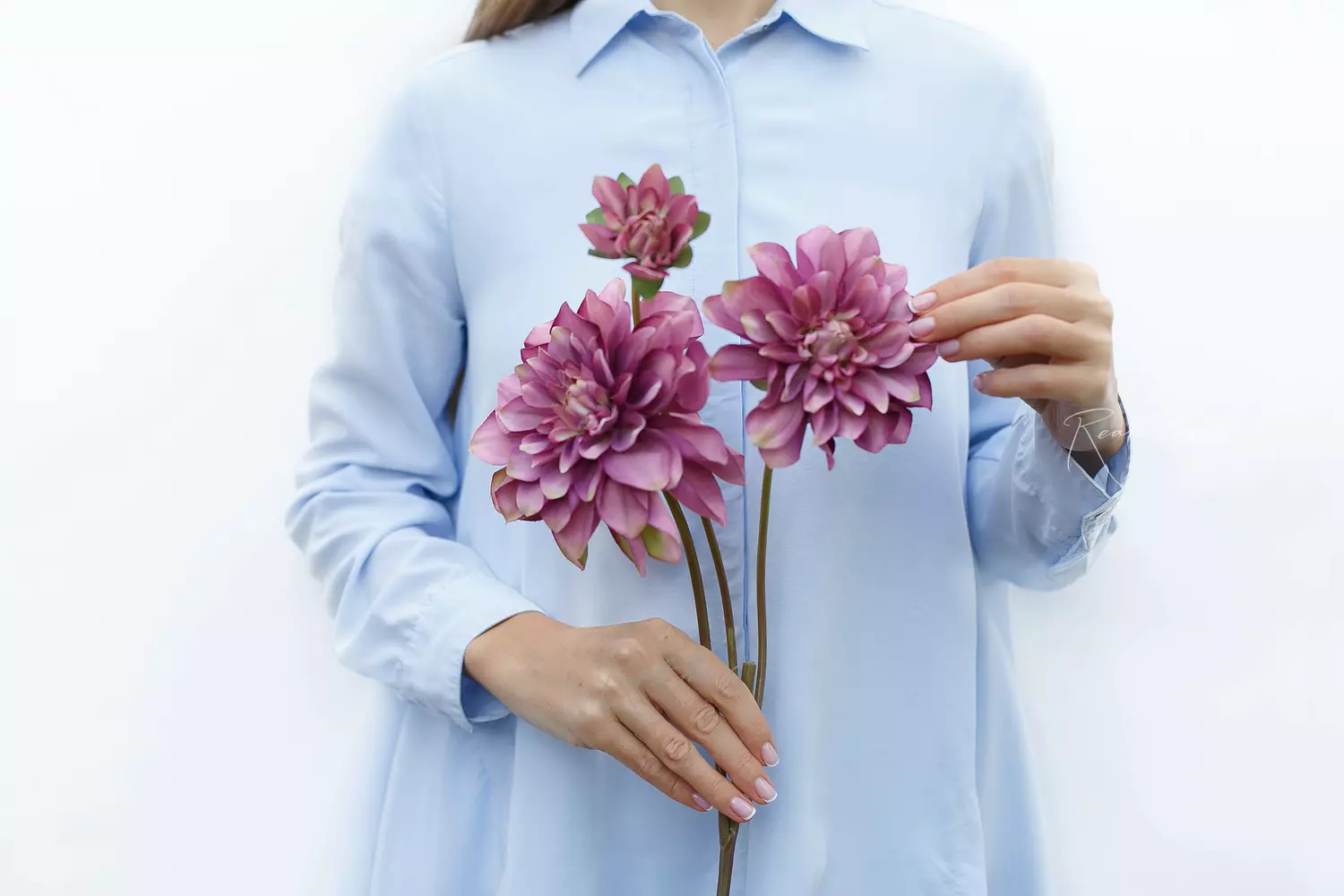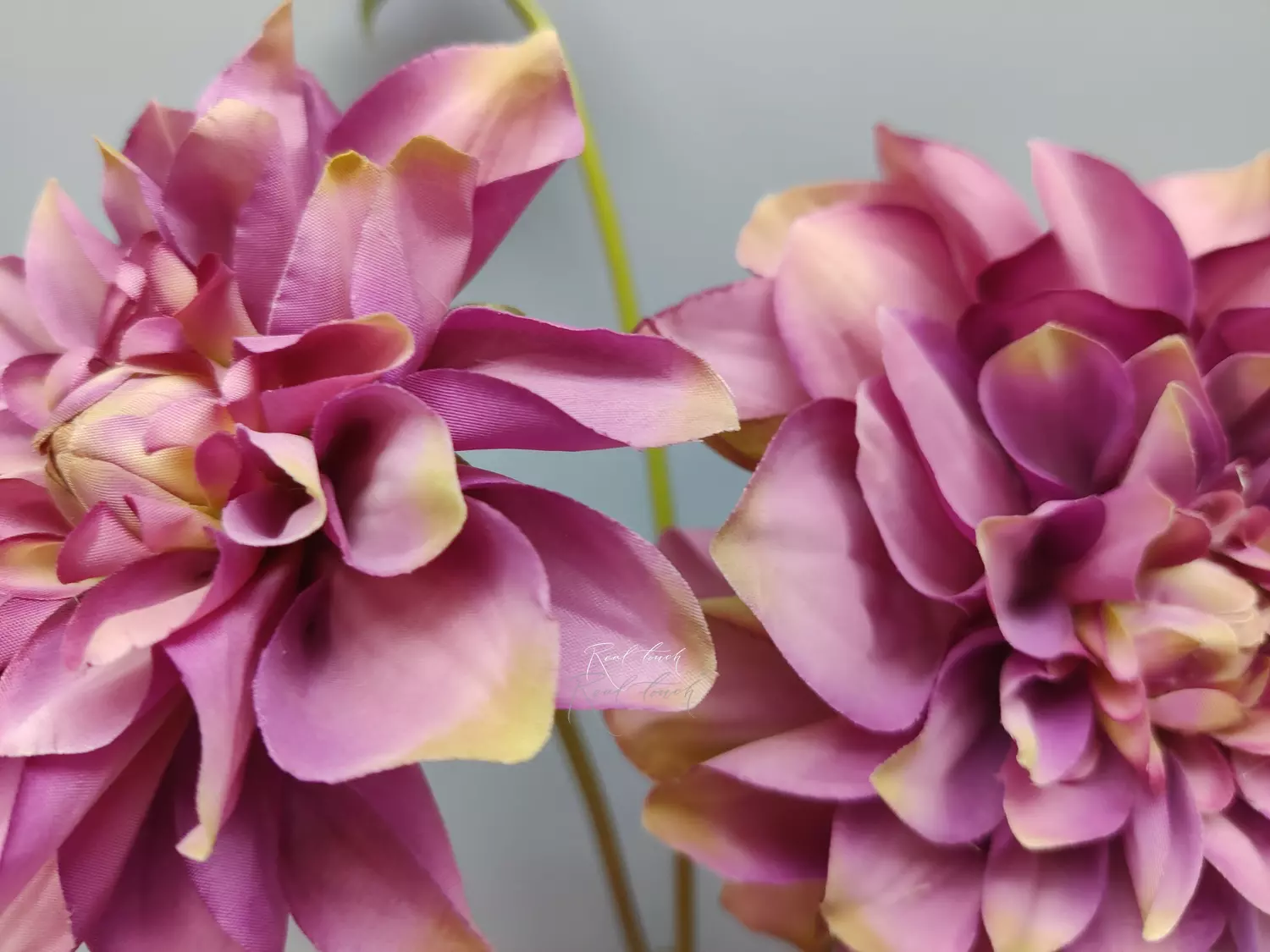 Выполнен цветок из качественного текстиля. Лепестки проклеены у основания, чтобы образовалась своего рода трубочка (может встречаться излишек клея, который легко убрать). Цветок состоит из 3 бутонов: один крупный, второй средний и закрытый бутон на длинном стебле. Самый крупный в диаметре 26см, общая высота цветка – 70см. Стебель силиконовый с металлической проволокой внутри. Цвет текстиля сложный, повторяющий живой цветок.
