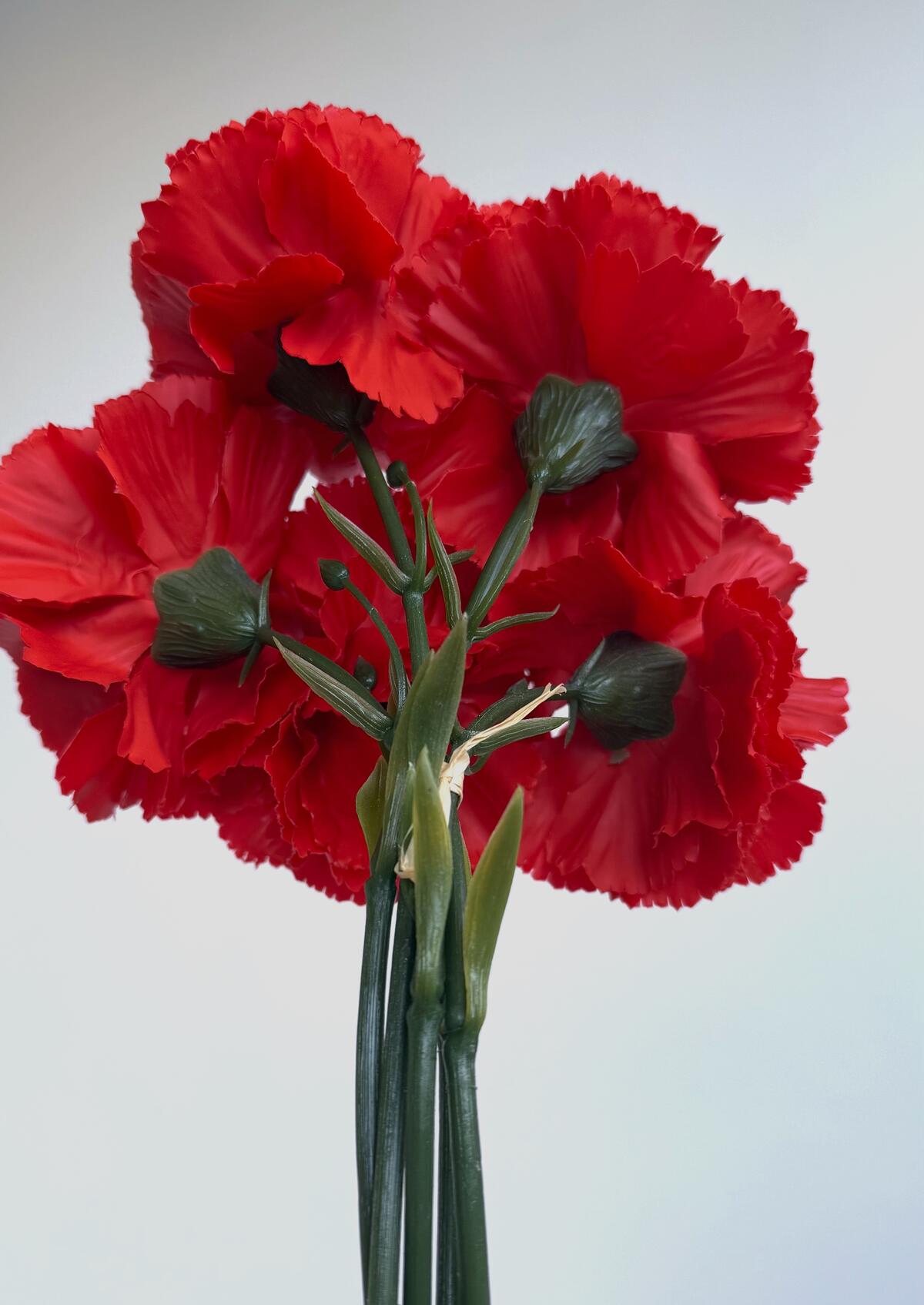 Букет гвоздик из 5 штук, выполненных из качественного силикона, который делает лепестки и листья максимально похожими на живые и приятными на ощупь. Стебли имеют прочную проволочную основу, благодаря чему букет легко гнется, держит форму и позволяет создавать разные композиции. Такое решение делает его универсальным как для самостоятельного использования в вазе, так и для включения в более сложные флористические декоры. Букет представлен в 10 разнообразных цветах — от нежных пастельных оттенков до ярких и насыщенных тонов, что дает возможность подобрать вариант под любой интерьер или настроение. Искусственные гвоздики не требуют ухода, долго сохраняют свежий вид и отлично подходят для оформления дома, офиса, кафе, витрин магазинов, а также для праздничного декора и фотозон