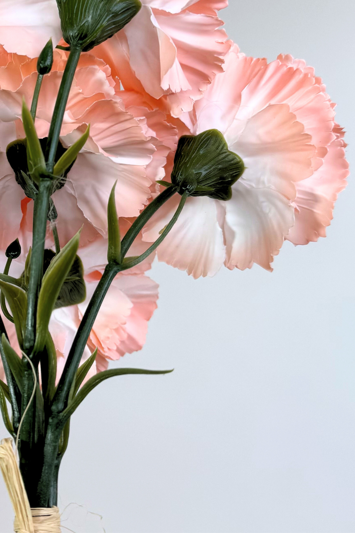 Букет гвоздик из 5 штук, выполненных из качественного силикона, который делает лепестки и листья максимально похожими на живые и приятными на ощупь. Стебли имеют прочную проволочную основу, благодаря чему букет легко гнется, держит форму и позволяет создавать разные композиции. Такое решение делает его универсальным как для самостоятельного использования в вазе, так и для включения в более сложные флористические декоры. Букет представлен в 10 разнообразных цветах — от нежных пастельных оттенков до ярких и насыщенных тонов, что дает возможность подобрать вариант под любой интерьер или настроение. Искусственные гвоздики не требуют ухода, долго сохраняют свежий вид и отлично подходят для оформления дома, офиса, кафе, витрин магазинов, а также для праздничного декора и фотозон