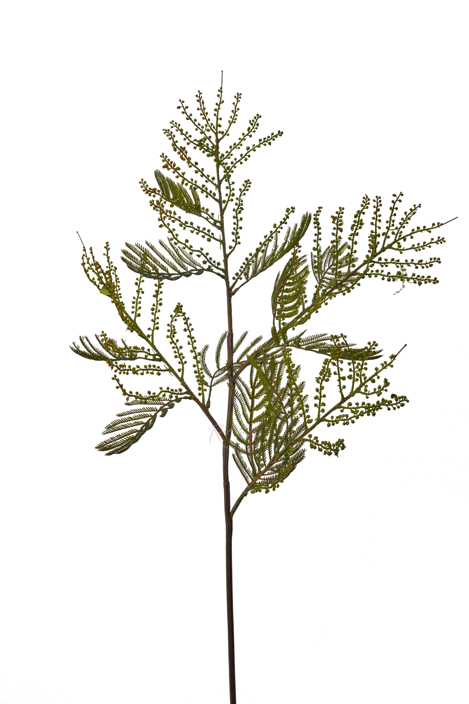 Необычная ветка мимозы в трех размерах: 87см, 105см, 154см. Материал – пластик. Веточка очень объемная и очень искусно выполнена, с множеством мелких деталей: характерный листики, как у нашей альбиции, на каждой веточке закрытые бутоны мимозы светло-зеленого цвета. В основании каждой веточки есть проволока, поэтому расправить можно так, как вам нравится. Такая мимоза уникальная и подойдет как в напольную композицию, так и в зеленую стену.