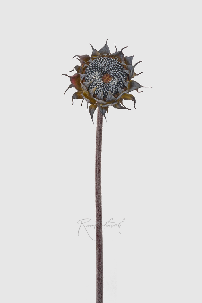 Высота стебля без цветка-52 см, Диаметр(ширина) цветка-7 см. Подсолнухи представлены в трех цветах - желтый, черный и зеленый. Отличительная особенность этого растения - это максимально реалистичный махровый стебель длиной 52см. Внутри стебля расположена проволока. Листья по длине стебля отсутствуют, но они абсолютно реалистично обрамляют саму сердцевину с семенами, и выполнены из силикона с напылением и натуральной расцветкой, при этом оттенки этих листков индивидуально прокрашены у каждой модели. Выглядит подсолнух просто невероятно натурально!