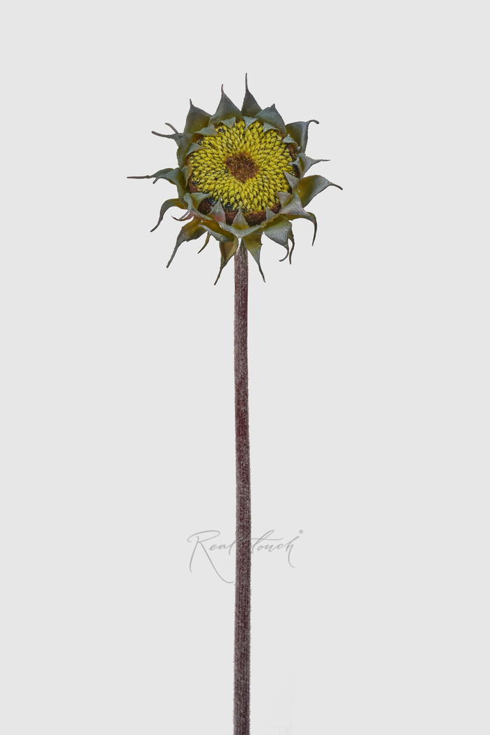 Высота стебля без цветка-52 см, Диаметр(ширина) цветка-7 см. Подсолнухи представлены в трех цветах - желтый, черный и зеленый. Отличительная особенность этого растения - это максимально реалистичный махровый стебель длиной 52см. Внутри стебля расположена проволока. Листья по длине стебля отсутствуют, но они абсолютно реалистично обрамляют саму сердцевину с семенами, и выполнены из силикона с напылением и натуральной расцветкой, при этом оттенки этих листков индивидуально прокрашены у каждой модели. Выглядит подсолнух просто невероятно натурально!