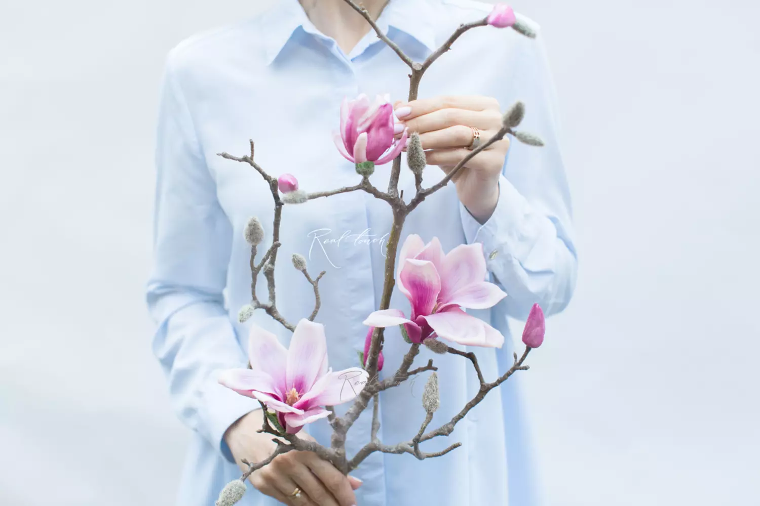 Ветка с цветами магнолии — это идеальное сочетание элегантности и реалистичности в ассортименте Real Touch!