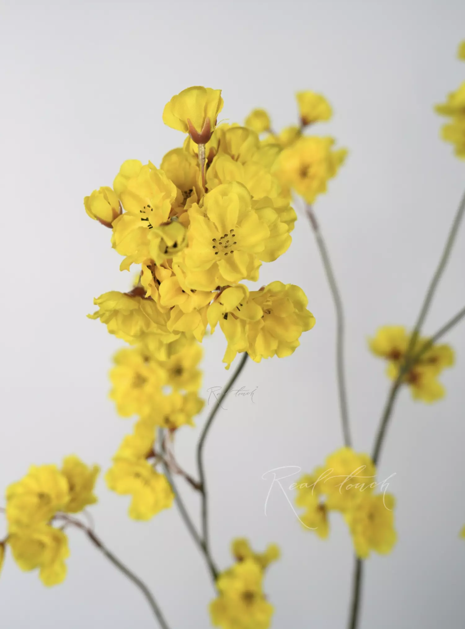 Ветка с цветами - великолепная позиция в ассортименте цветущих веток Real Touch. Её насыщенные желтые цветы и лёгкая структура делают её идеальным дополнением для интерьеров!