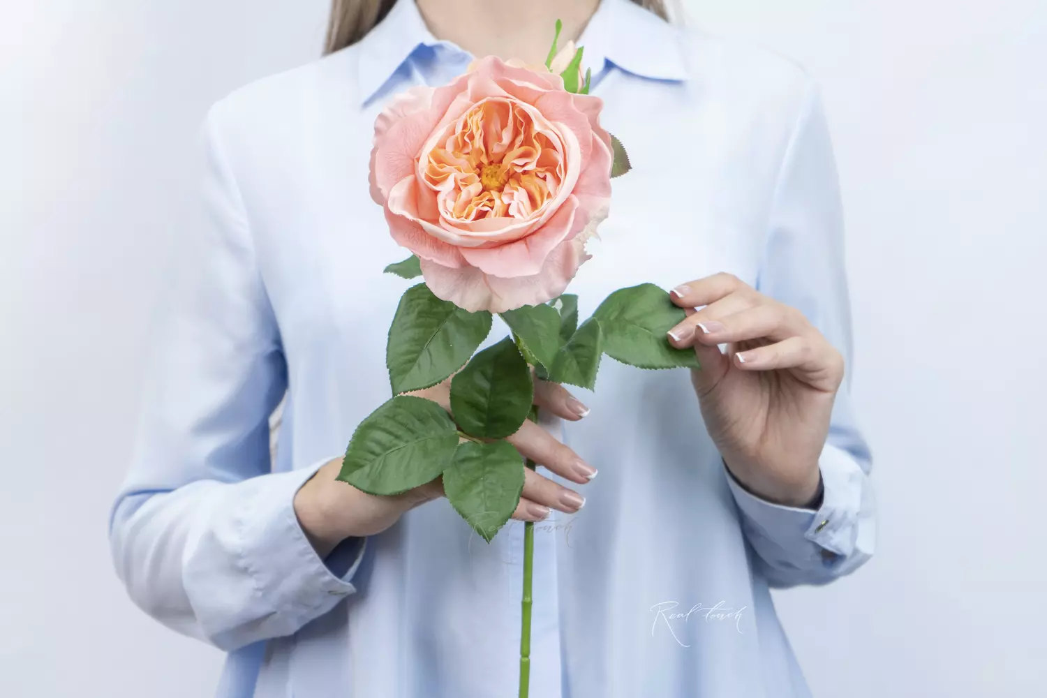 Роза Дэвида Остина Пилигрим — это уникальная модель розы в ассортименте Real Touch, ботаническая копия сорта Пилигрим, отличающаяся детальной проработкой лепестков и невероятно приятной на ощупь текстурой, полностью передающей бархатистость и мягкость живого цветка.