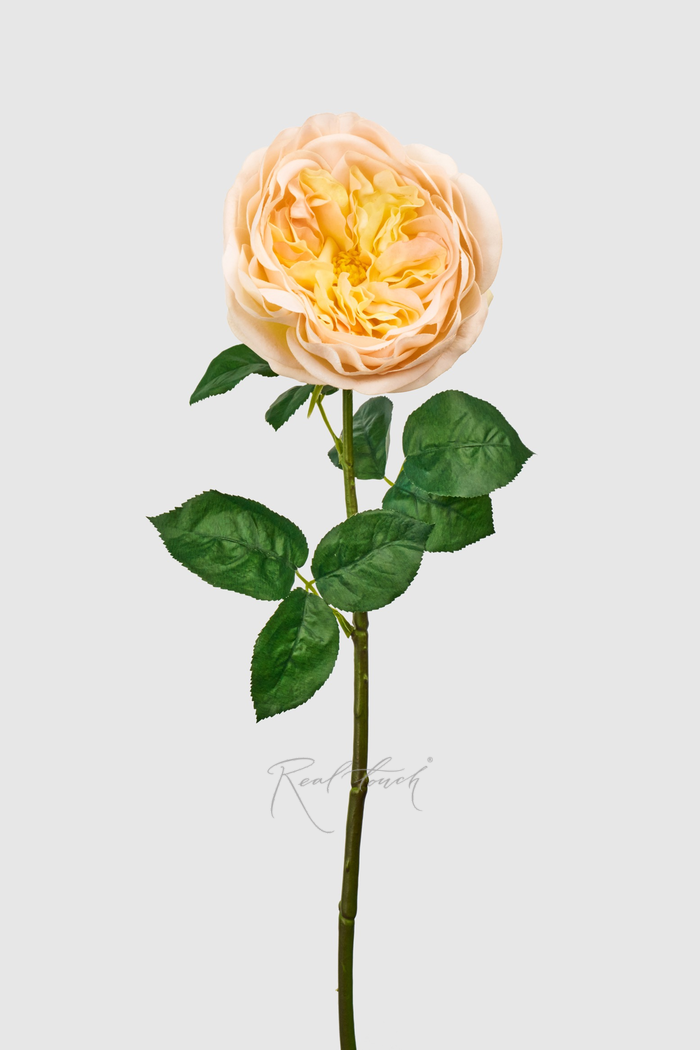 Роза Дэвида Остина Пилигрим — это уникальная модель розы в ассортименте Real Touch, ботаническая копия сорта Пилигрим, отличающаяся детальной проработкой лепестков и невероятно приятной на ощупь текстурой, полностью передающей бархатистость и мягкость живого цветка.
