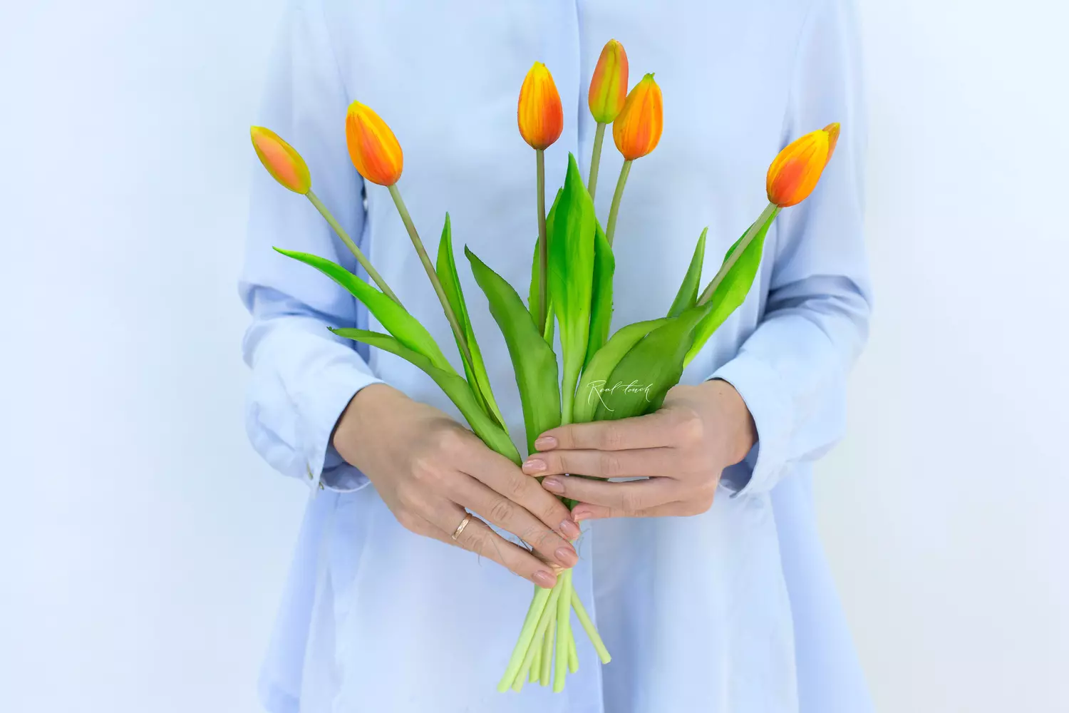 Букет закрытых тюльпанов 4+3 - очаровательная, весенняя позиция в ассортименте Real Touch!