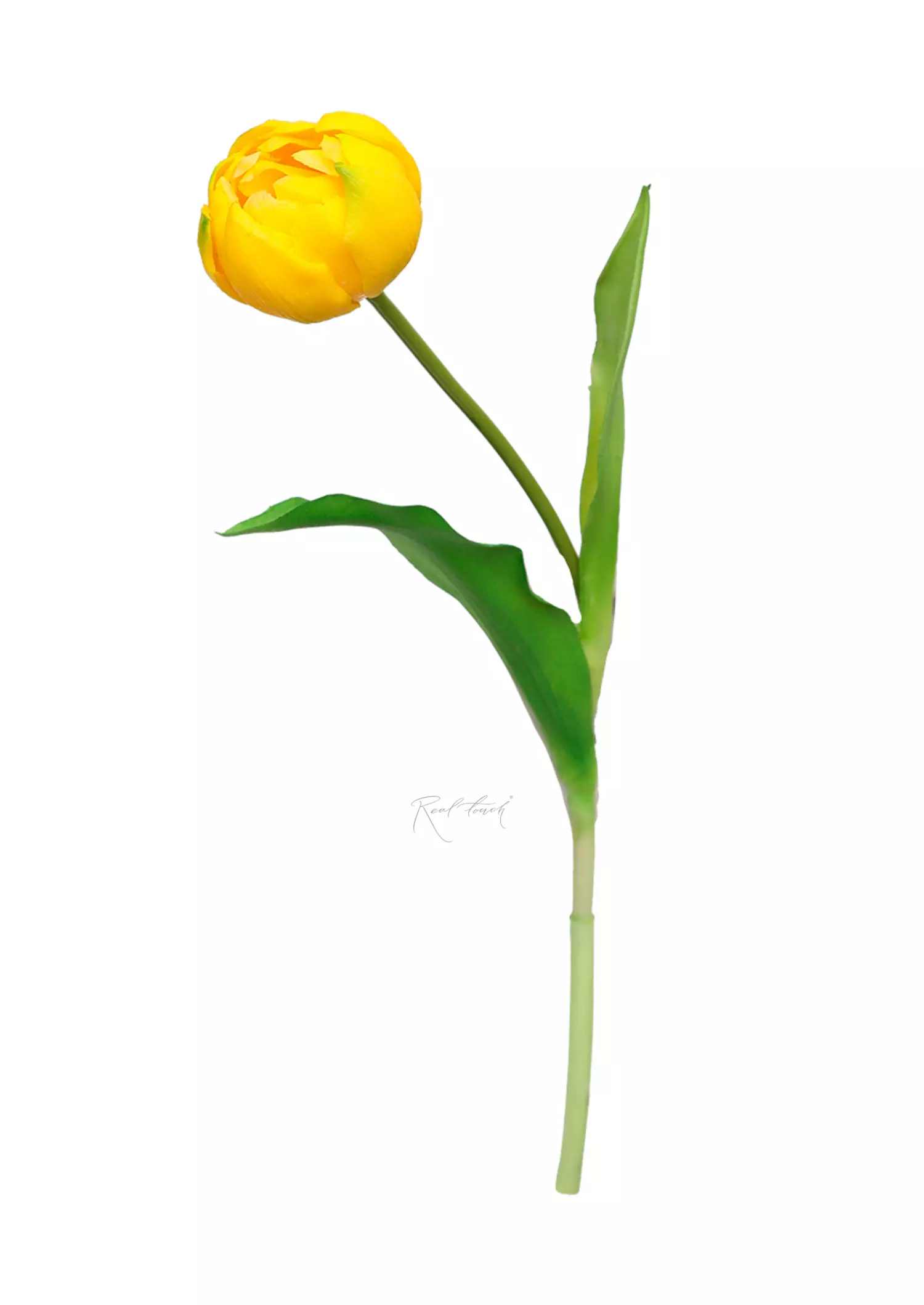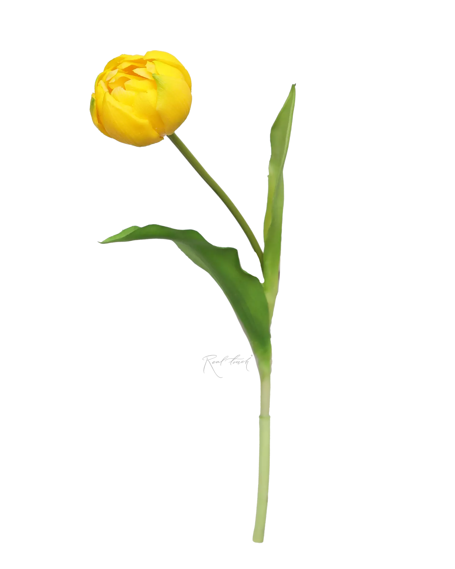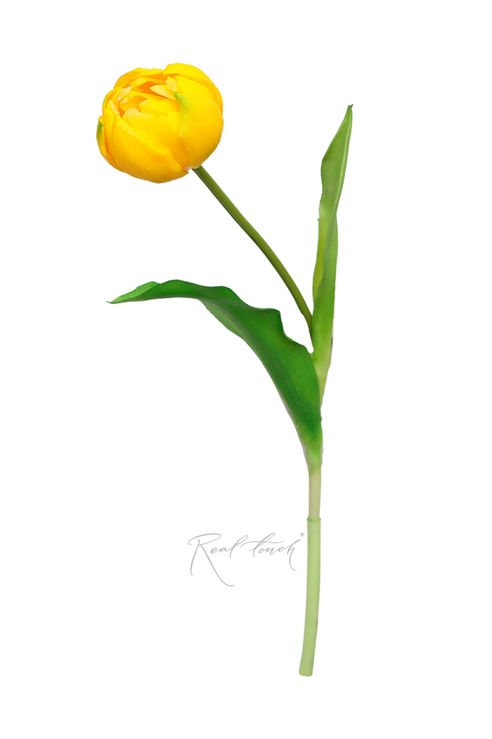 Желтый тюльпан выполнен из плотного силикона, который имитирует тактильные ощущения от натурального цветка, даже его листья «скрипят» точно так же и имеют заостренную форму.