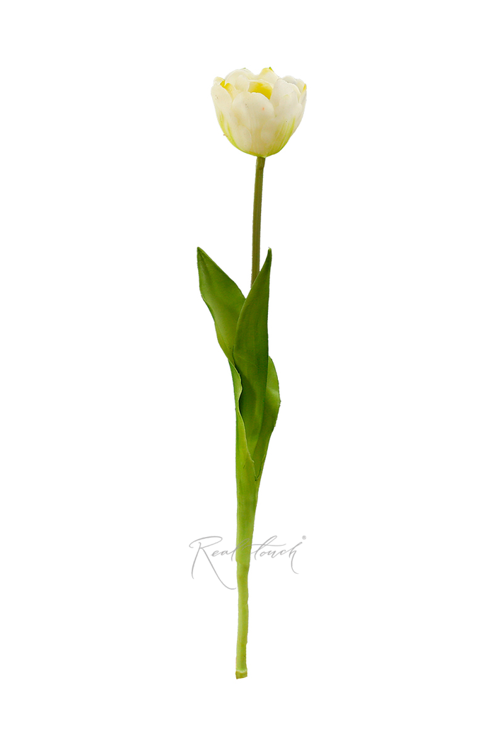 Стебель имеет естественный градиент от насыщенно-зеленого цвета к светло-зеленым оттенкам у основания. Также внутри стебля находится проволока, позволяющая задавать необходимую форму и направление, что делает тюльпан универсальным для использования в композициях.