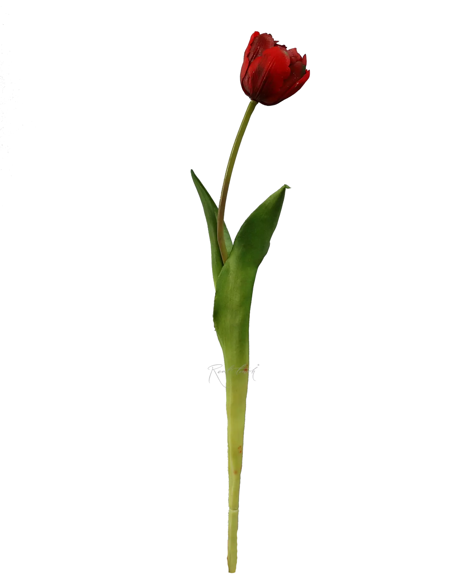 Стебель имеет естественный градиент от насыщенно-зеленого цвета к светло-зеленым оттенкам у основания. Также внутри стебля находится проволока, позволяющая задавать необходимую форму и направление, что делает тюльпан универсальным для использования в композициях.