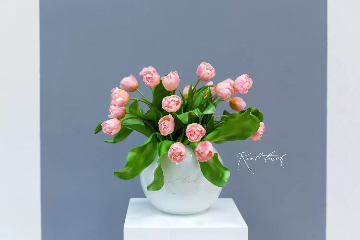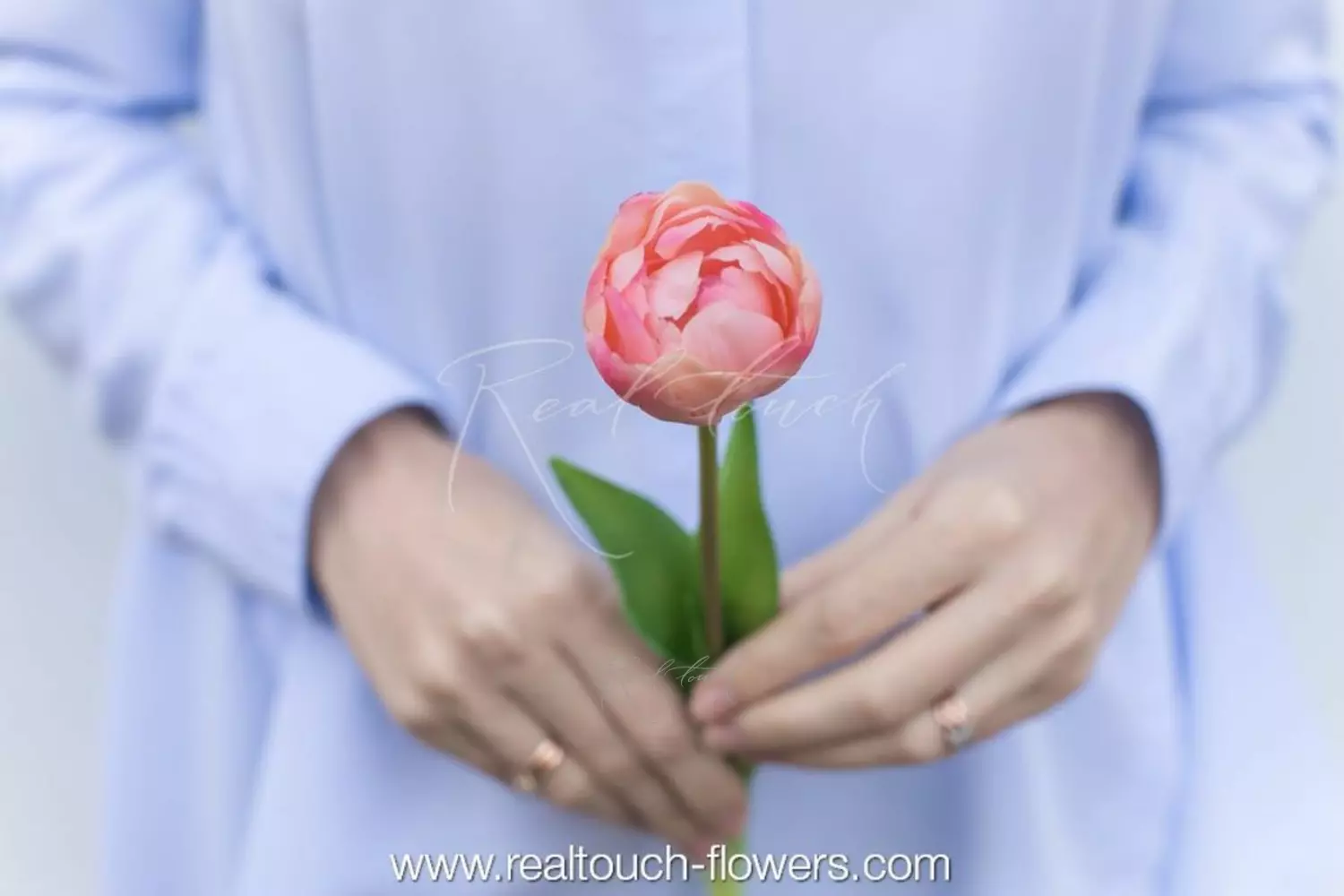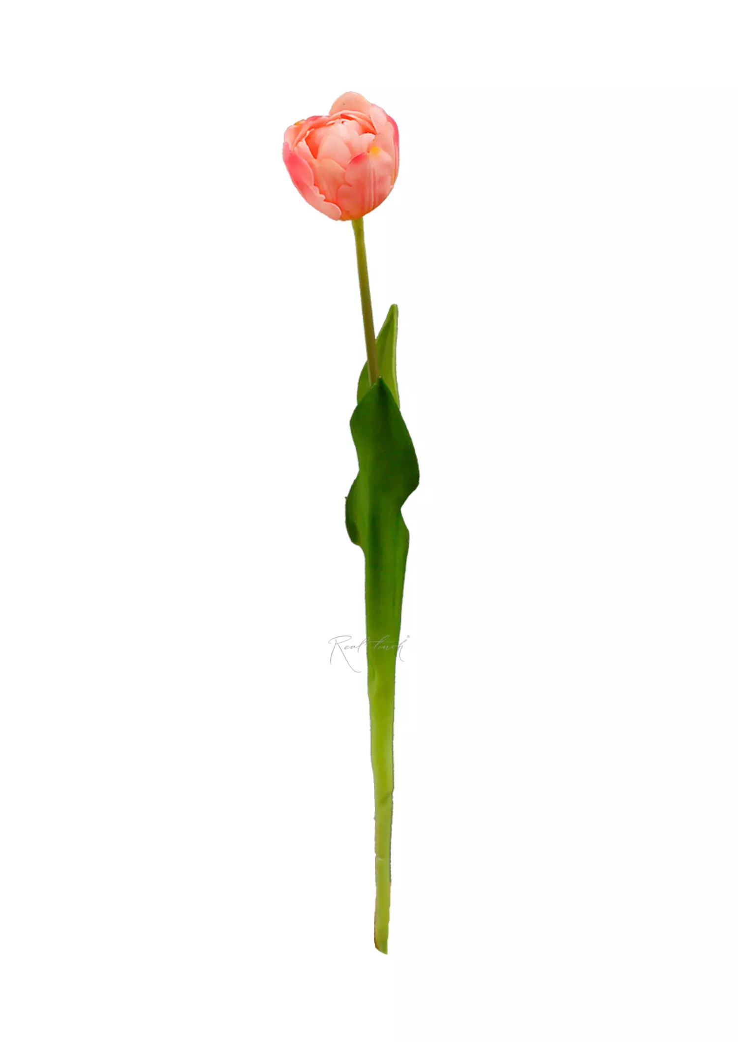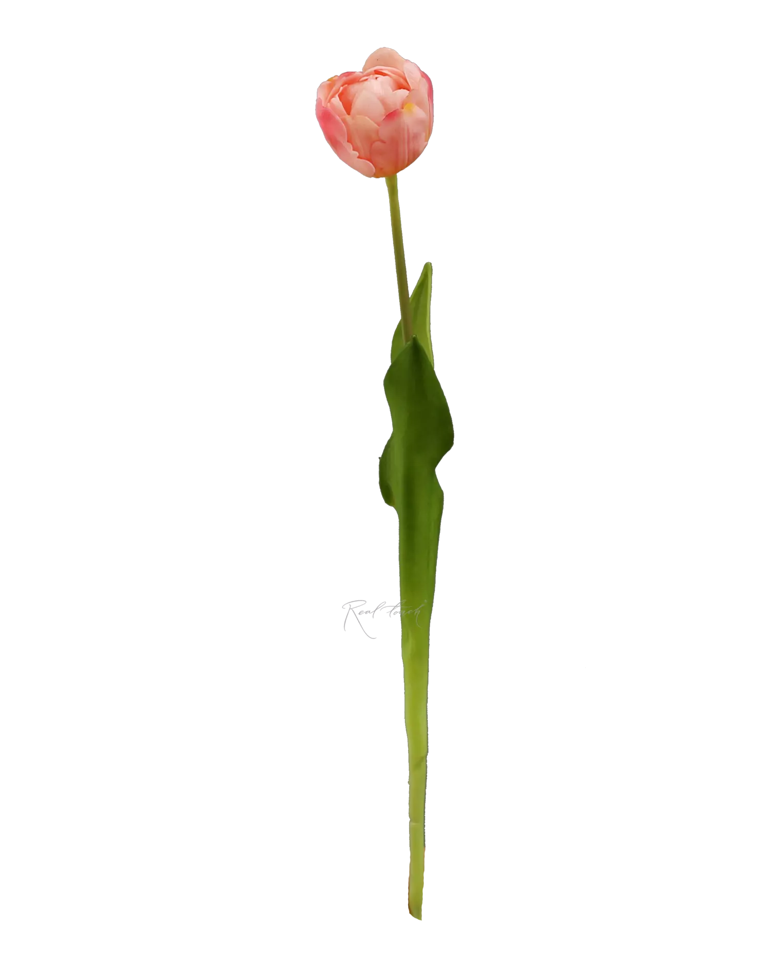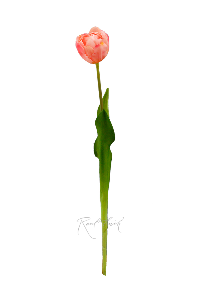 Стебель имеет естественный градиент от насыщенно-зеленого цвета к светло-зеленым оттенкам у основания. Также внутри стебля находится проволока, позволяющая задавать необходимую форму и направление, что делает тюльпан универсальным для использования в композициях.