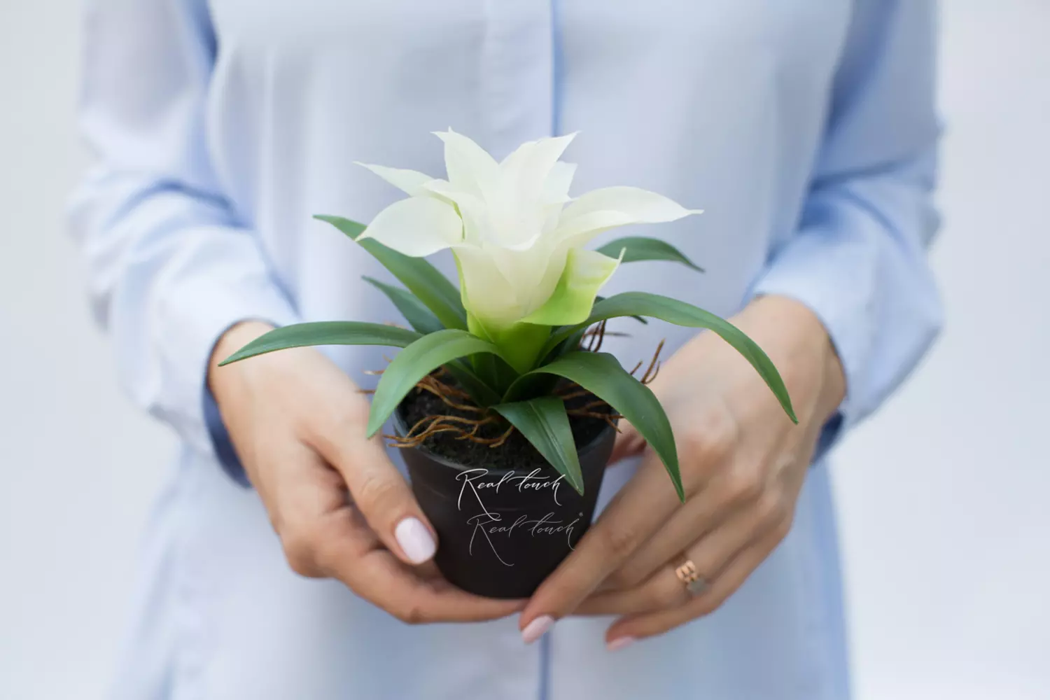 Гузмания малая в кашпо (17см) - Белый