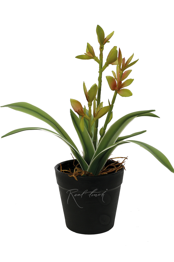 Куст юкки малыш с ростками в кашпо (24см) - Зелено-желтый