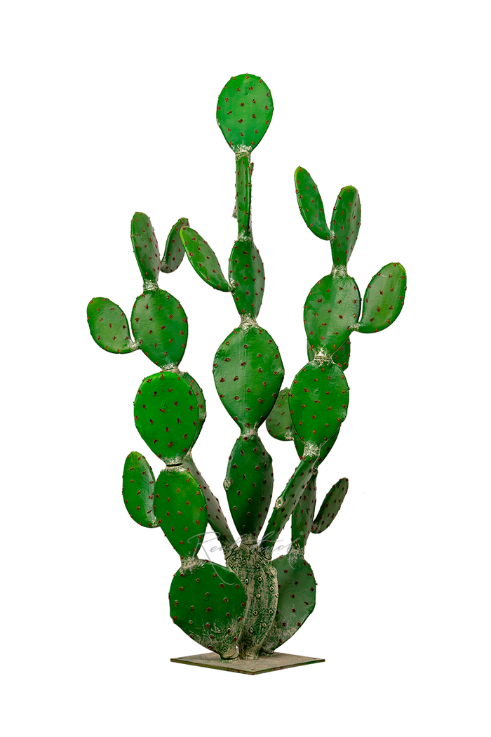 Сборный раскидистый кактус Опунция гигант зеленого цвета высотой 168см. Детали выполнены из пластика с глазировкой и флокированием. Коричневые колючки из тонкого пластика не колются, но выглядят максимально естественно. На каждой детали есть наклейка с номером и стрелкой для простоты сборки. Собирать лучше в перчатках с целью сохранения эффекта напыления. При необходимости для восстановления напыления можно использовать кисть и детскую присыпку. Кактус идет на плоской металлической подставке-основании для утяжеления и равновесия. Представлен также в размерах 129см и 204см.