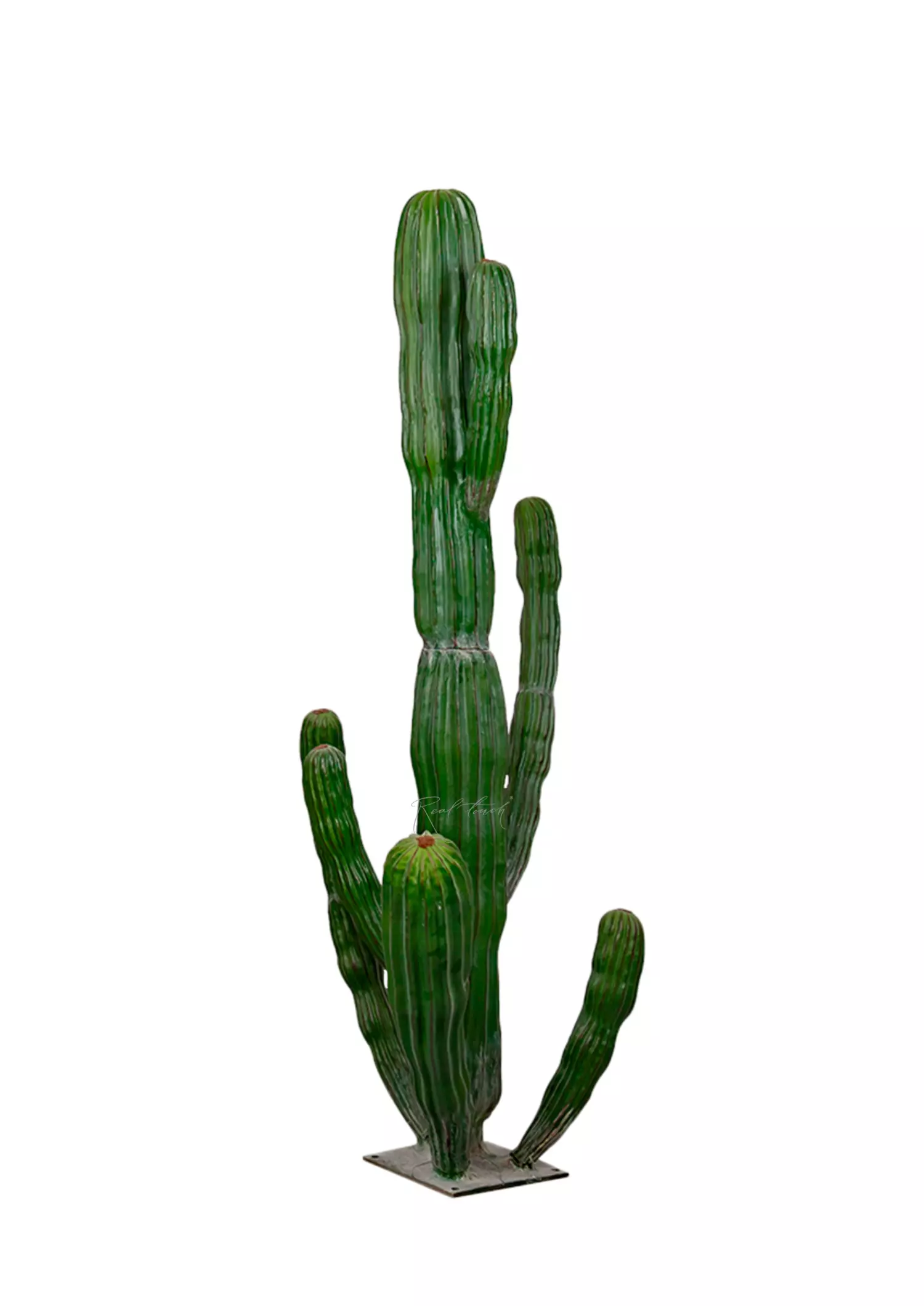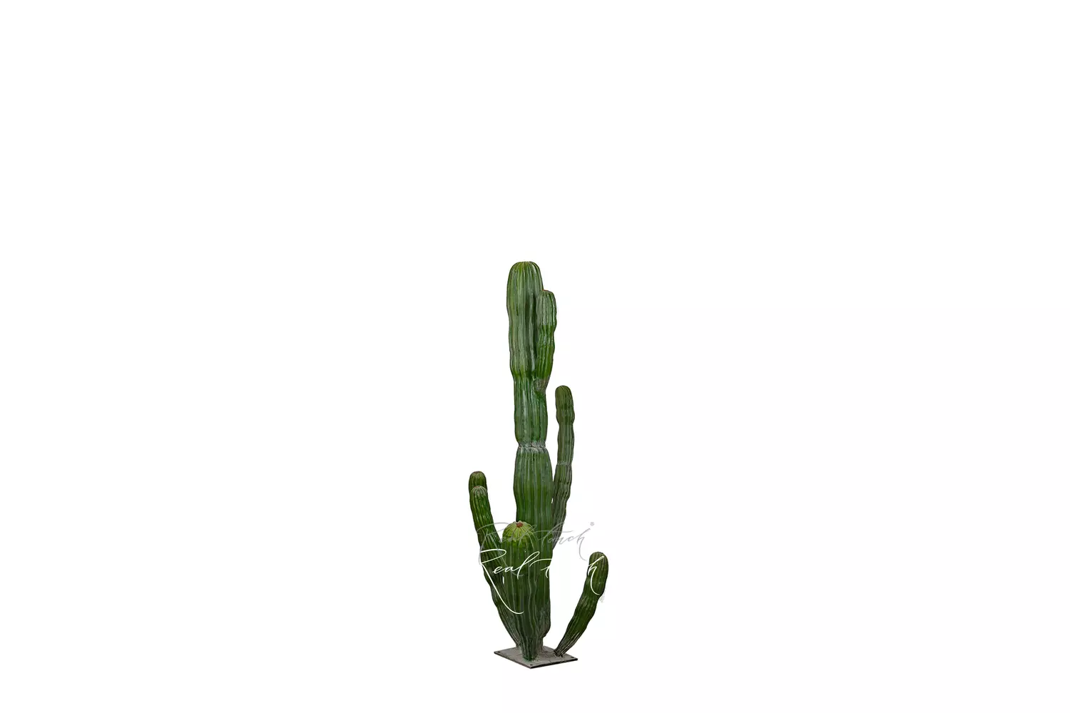 Пустынный кактус-гигант из пластика с эффектом напыления высотой 160см. Рельеф и неравномерный цвет деталей полностью копируют форму настоящего кактуса. Детали пронумерованы и собираются вручную. Рекомендовано собирать в перчатках для сохранения эффекта напыления, а для его восстановления можно использовать кисть и детскую присыпку. В основании кактуса — плоская металлическая подставка для утяжеления и равновесия. Представлен также в размерах 260см и 310см.