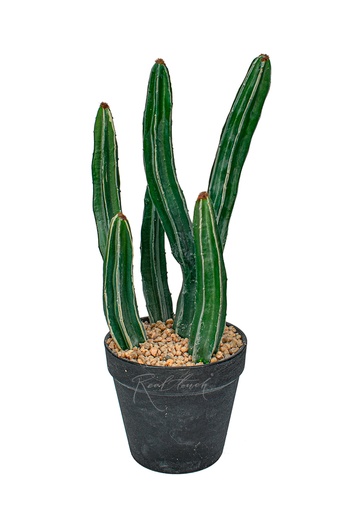 Цельный кактус Султан 36см высотой темно-зеленого цвета. Изготовлен из пластика, полый внутри, за счет чего очень легкий. Снаружи выполнена имитация напыления. На кончиках стеблей есть не колючие иголочки из тонкого пластика. Открытая часть черного технического кашпо декорирована слоем мелких камушек песочного цвета, которые прочно проклеены и не осыпаются. Представлен также в размере 51см.