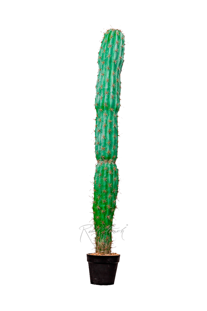 Цельный кактус Трихоцереус 150см высотой. Вытянутый ствол изготовлен из пластика. Он пустой внутри, за счет чего кактус достаточно легкий. Форма рельефа, напыление ствола, а также часто посаженные светлые иголочки — в точности как у настоящего кактуса. Только наши иголки абсолютно не колючие, так как сделаны из силикона, и даже приятны на ощупь. Устанавливать кактус рекомендуется в перчатках с целью сохранения эффекта напыления. При необходимости для восстановления напыления можно использовать кисть и детскую присыпку. Открытая часть черного технического кашпо декорирована слоем мелких камушек песочного цвета, которые прочно проклеены и не осыпаются. Трихоцереус представлен также в размерах 50см и 113см.