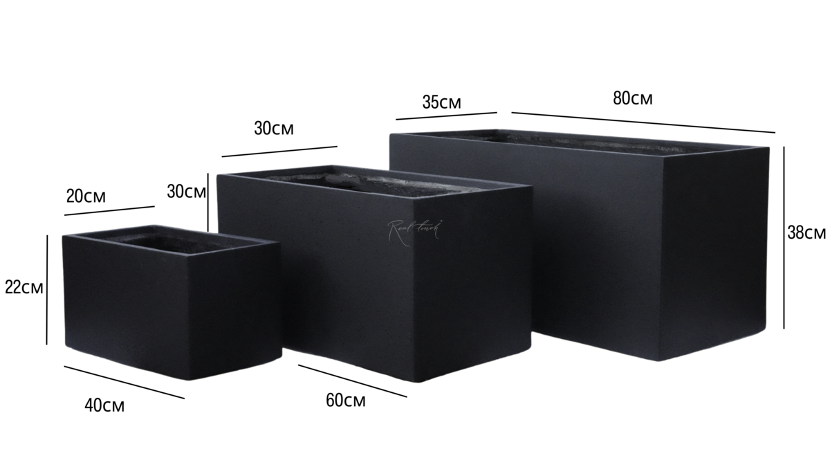 Кашпо Real Touch прямоугольное низкое S - 40/20/22 см - Черный