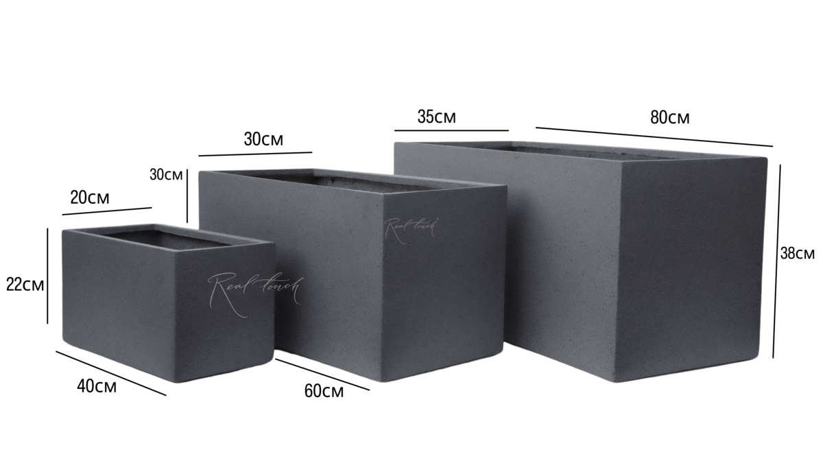Кашпо Real Touch прямоугольное низкое S - 40/20/22 см - Серый