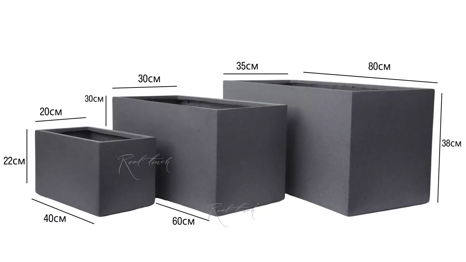 Кашпо Real Touch прямоугольное низкое M - 60/30/30 см - Серый