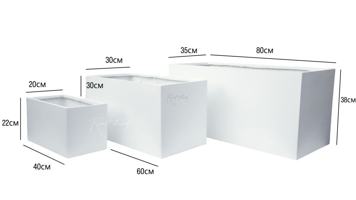 Кашпо Real Touch прямоугольное низкое L - 80/35/38 см - Белый