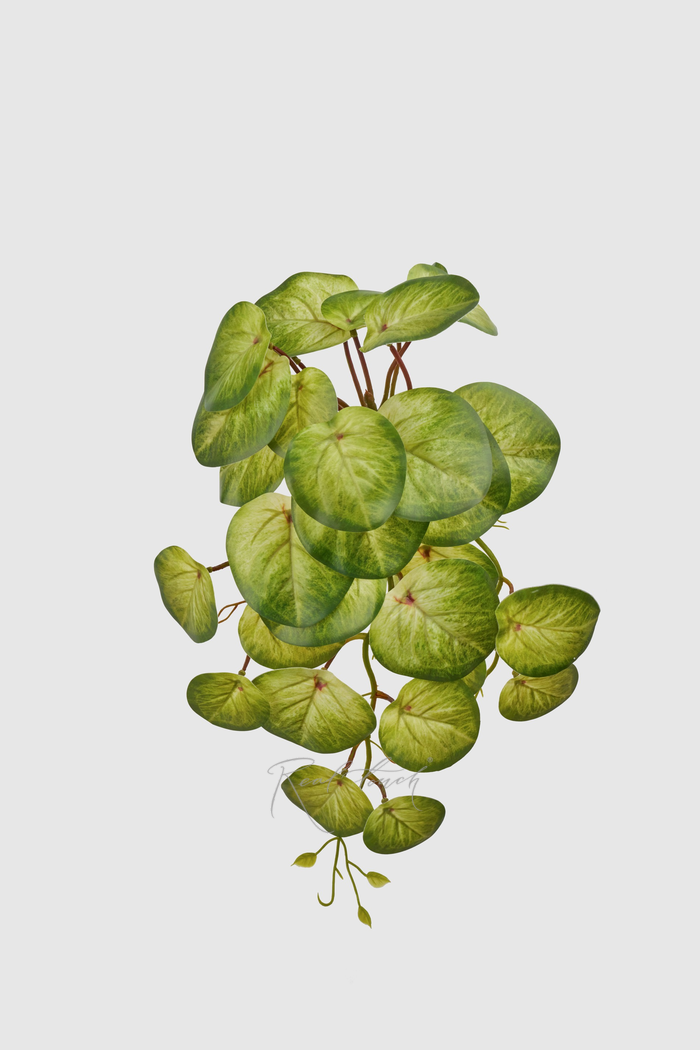 Данный ампельный кустик Пеперомии является аналогом похожей позиции - id: 2271. Отличительной особенностью данной позиции является более яркая и контрастная прокраска листочков., которые выполнены из водонепроницаемого полимерного волокна с 3D-печатью реалистичного рисунка. Листья плотные, красивой полукруглой формы, разного размера со светло-коричневой сердцевинкой и переходом цвета от светло-зеленого сверху к темно-зеленому по краям. Листья крепко посажены к стеблю на клей, но при желании можно снять.