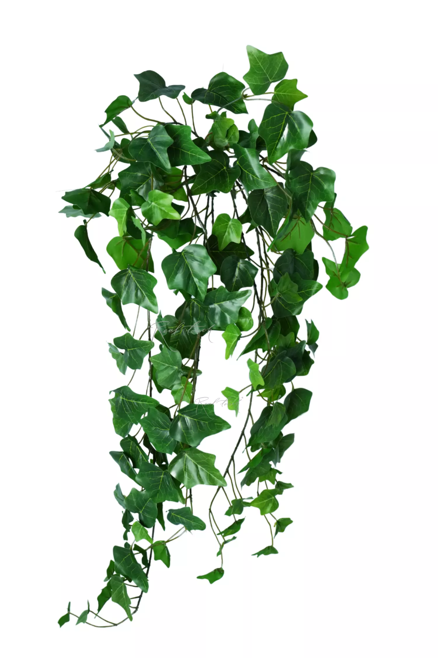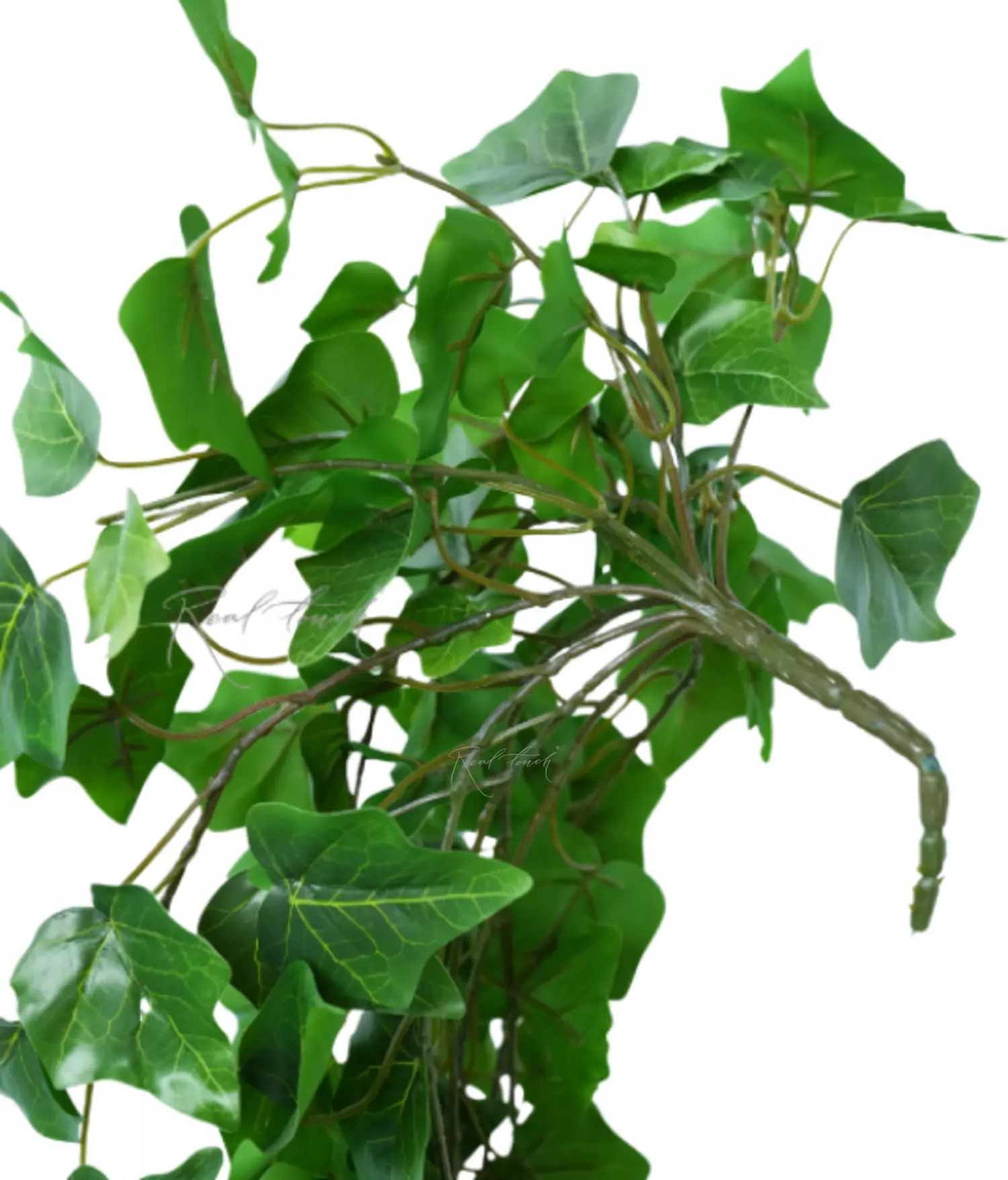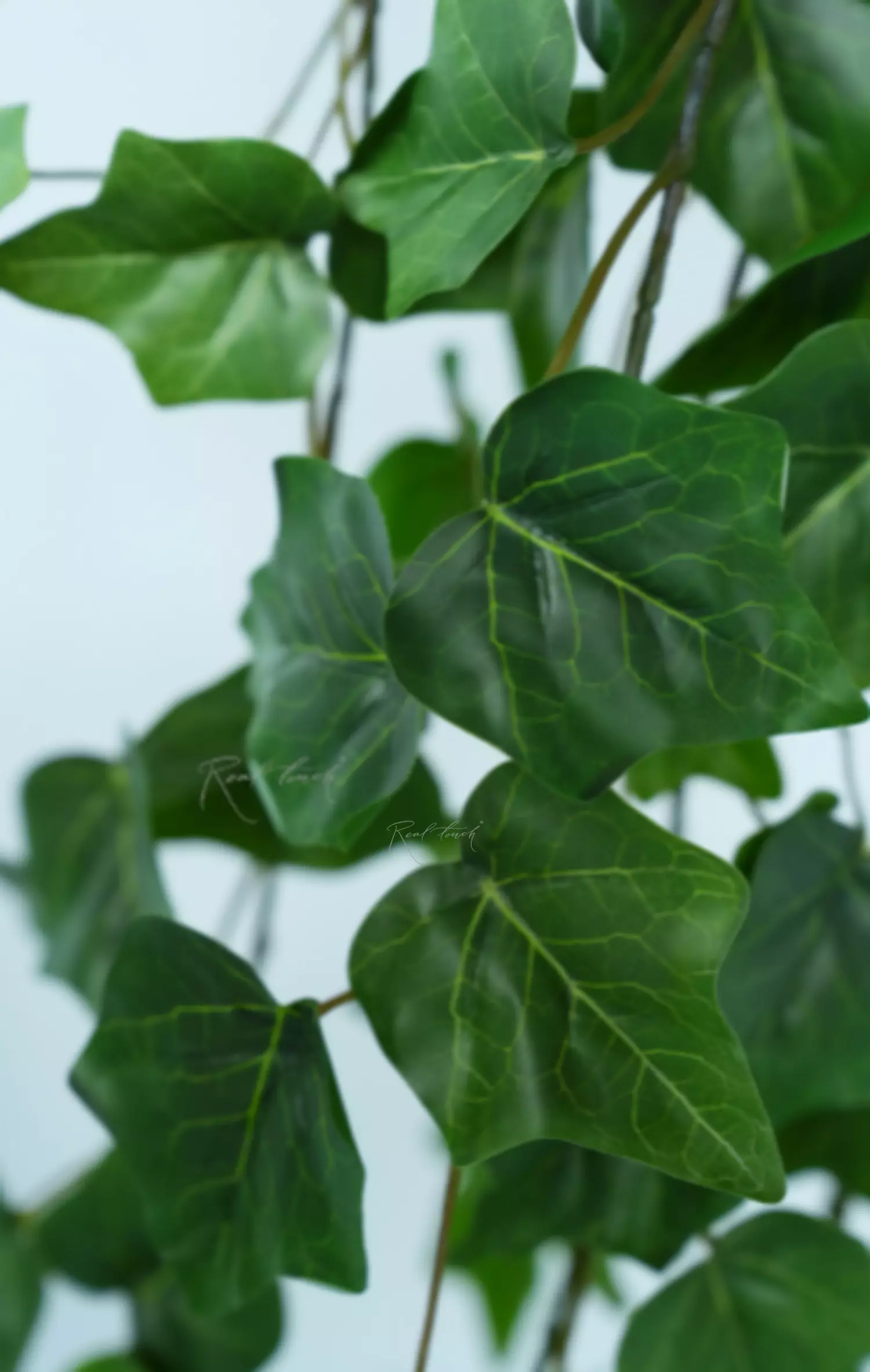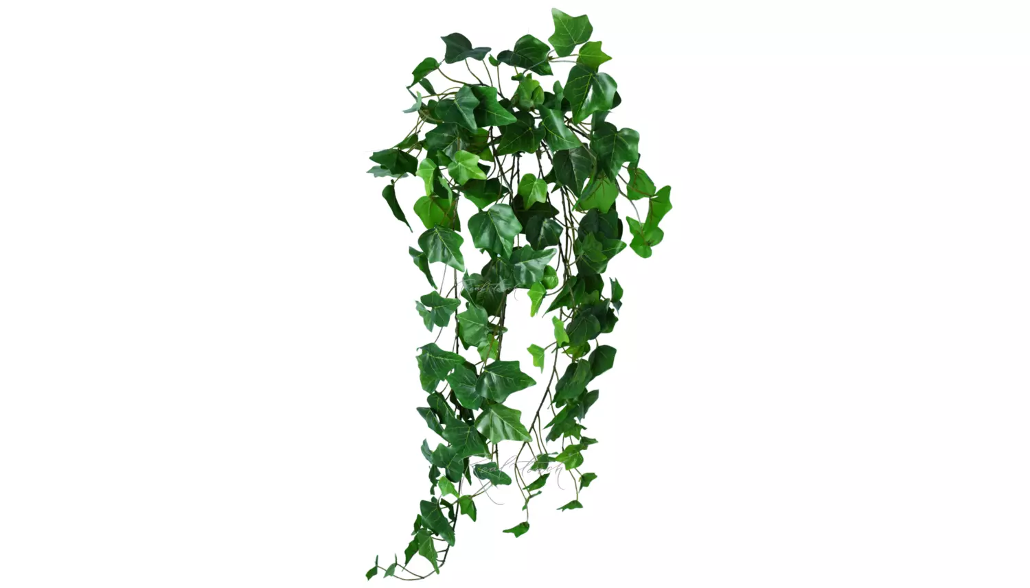 Плющ 70 см - представлен в виде объемного куста с изящными, извилистыми ответвлениями. Листья выполнены из водонепроницаемого волокна с 3D печатью прожилок. На внутренней стороне есть небольшие усилители, которые помогают листику держать форму. Листья имеют насыщенный темно-зеленый окрас, небольшие листочки на концах ответвлений чуть светлее, чем основная листва. Данное решение придает плющу реалистичность и естественность.