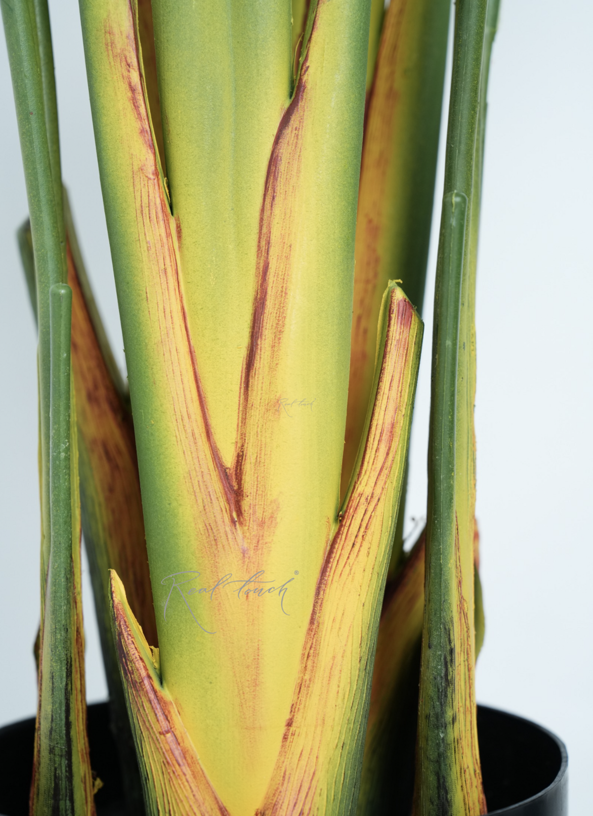 Стебли плотные, выполнены из пластика. У основания имеют светло-зеленый градиент, а также имитацию сухих листьев желто-коричневого цвета.