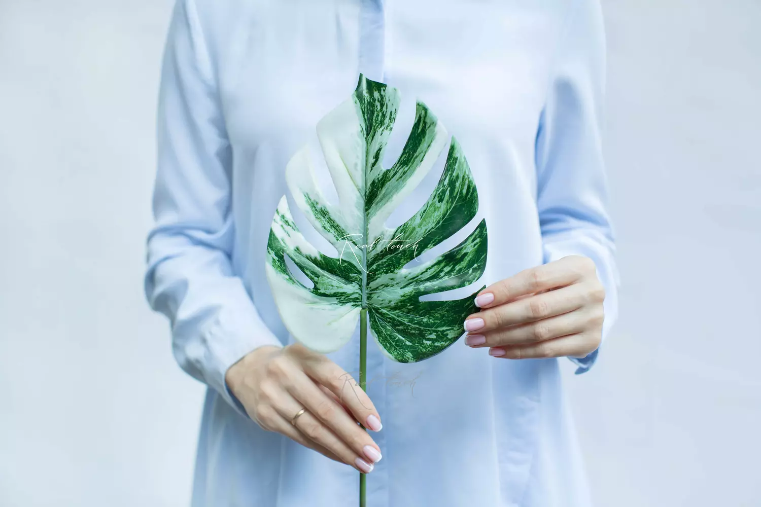 Монстера вариегата — вид, который часто используют в оформлении интерьеров. Она обладает пестрыми бело-зелеными листьями. Длина листа 55см,включая стебель 39см, длина листа 21см, ширина 16см. Материал плотный, но цвет сохраняется и на обороте. Лист есть в 4-х размерах.