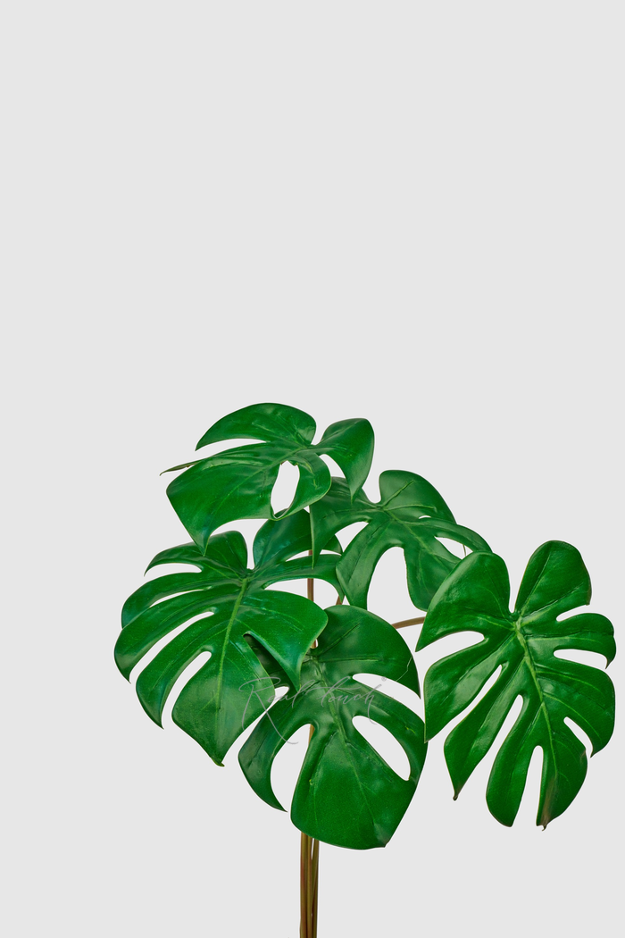 Искусственный пучок листьев монстеры — элегантная композиция из шести реалистичных листьев для создания тропического настроения в интерьере.