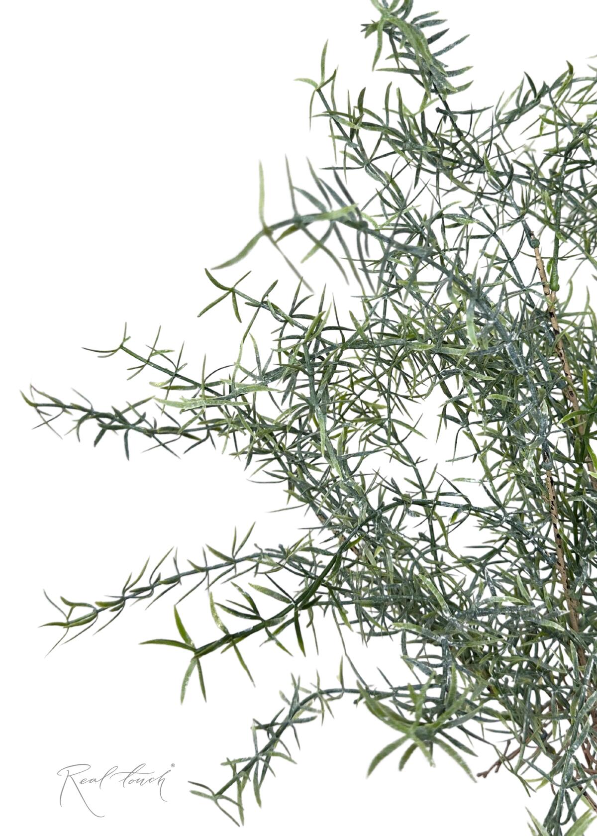 Искусственный аспарагус пушистый в пыльно-зеленом исполнении представляет собой великолепную имитацию натурального растения. Благодаря высококачественному мягкому пластику с редким тонким ворсом, растение обладает невероятной реалистичностью и приятной на ощупь текстурой.