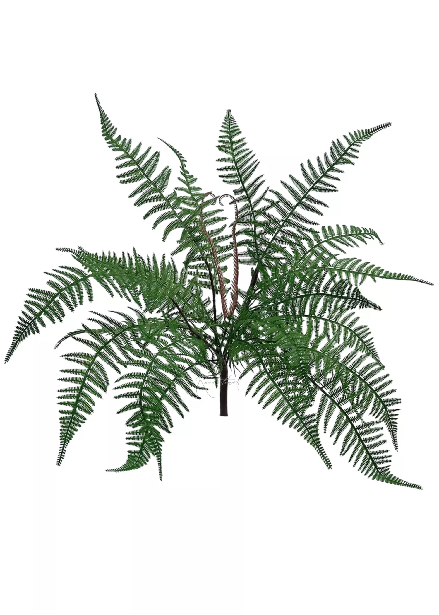 Куст состоит из ножки-крепления, помещенной в пластиковую тубу, и нескольких ответвлений разной длины. Такое строение придает растению объем и разнообразие текстур. Листья выполнены из мягкого пластика, резные и детализированные, что делает их реалистичными и характерными для многорядника.