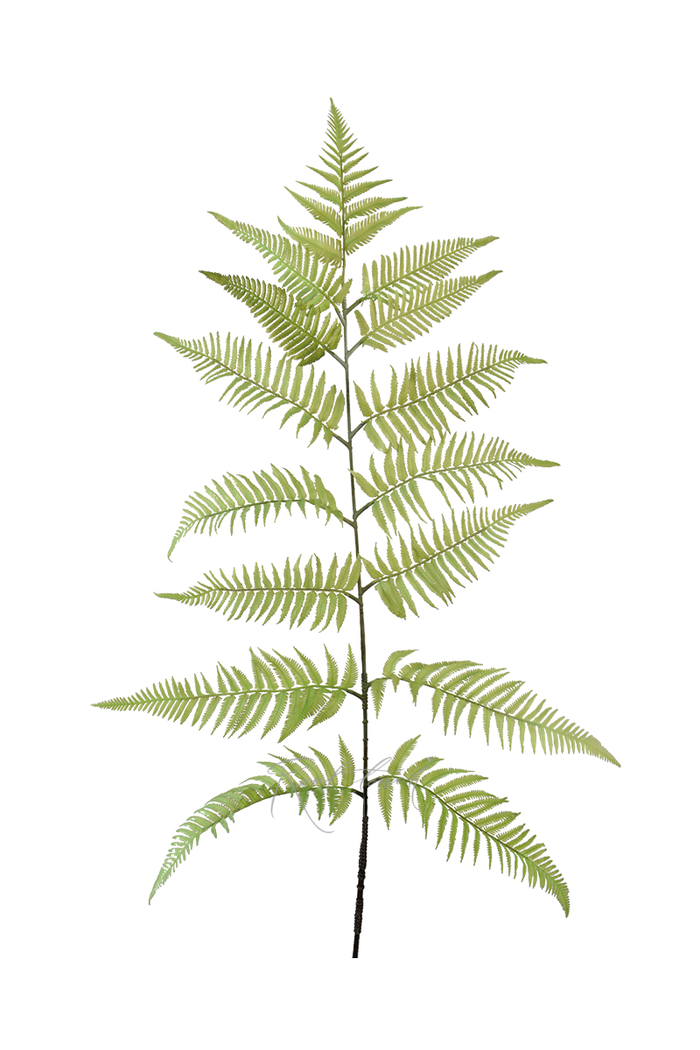 Листья папоротника отличаются изящной детализацией: тонкие, изогнутые сегменты с прожилками выполнены из качественного мягкого пластика. Их натуральный светло-зелёный оттенок добавляет композиции лёгкость и свежесть. Листва имеет пышную структуру, распределённую равномерно по всей длине ветки, что создаёт впечатляющий объём и визуальную насыщенность.