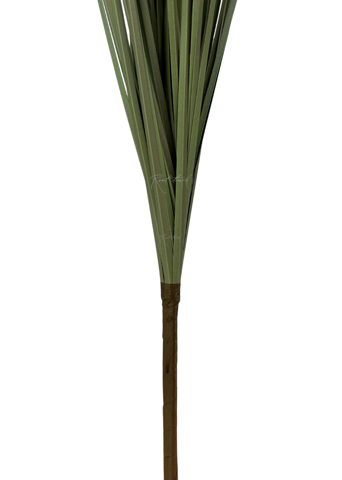 Травинки выполнены из мягкого пластика, что обеспечивает их реалистичность и долговечность, а также легкость и подвижность. Ножка-крепление, длиной 18 см, обёрнута в бумажную оплётку, что подчёркивает натуральность растения и облегчает его крепление в композициях.